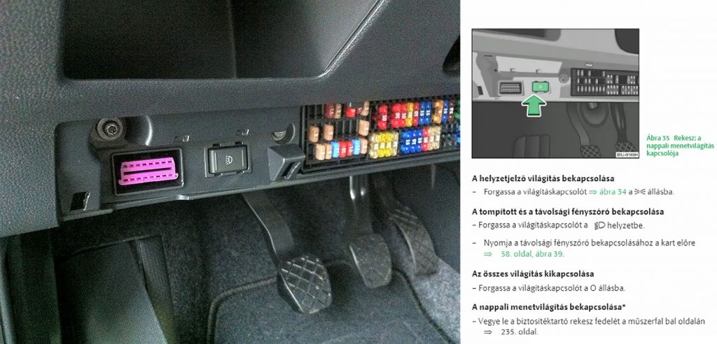 Tudtátok, hogy a biztosítéktábla alatt van egy kapcsoló, amit átkattintva „örökégővé” válik a tompított és minden motorindításnál automatikusan felkapcsol a világítás?