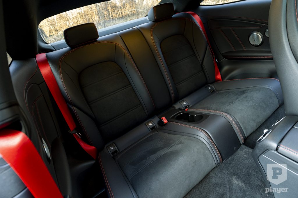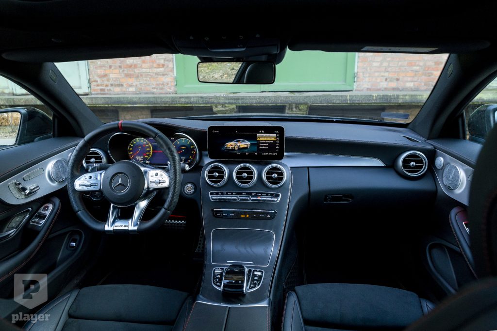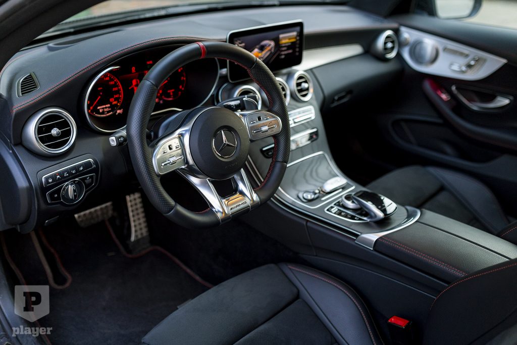 A sportautó-hangulatot fokozzák még a sportos, de hosszabb távon is kényelmes sportülések, a piros cérna az üléseken, műszerfalon és kormányon, a szintén piros biztonsági övek, az egyébként minden autóban hasznos, de csak kevésben tartott kis tűzoltópalack, a kormány középállását jelző – természetesen piros – vonal, szóval a tulajdonos aligha sóhajtozik majd csalódottan útközben, hogy neki nem jött össze a C 63 AMG.