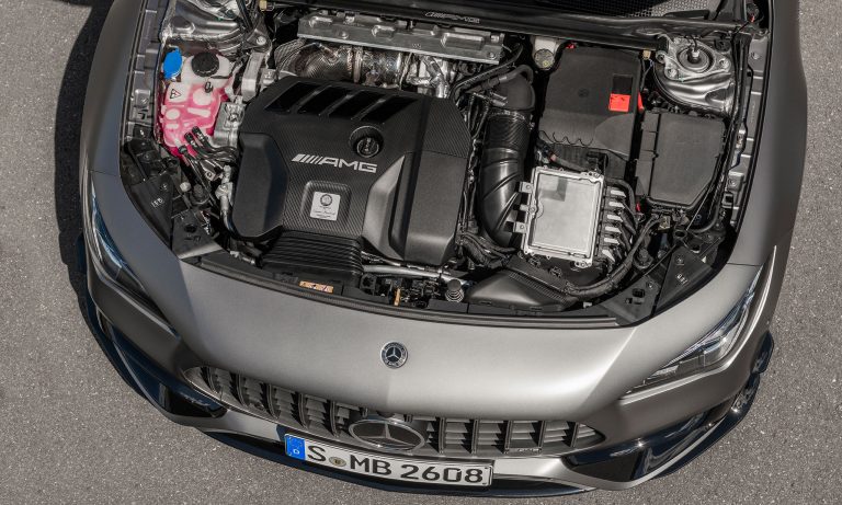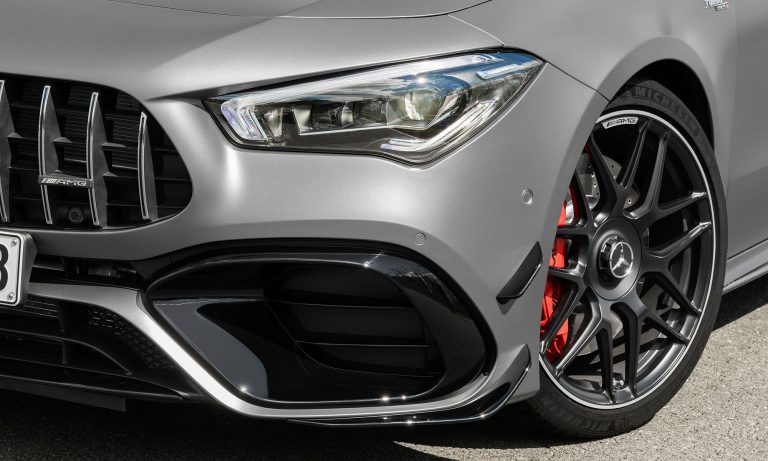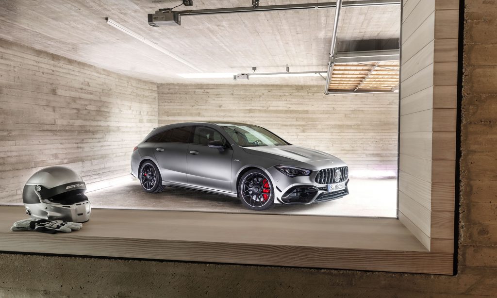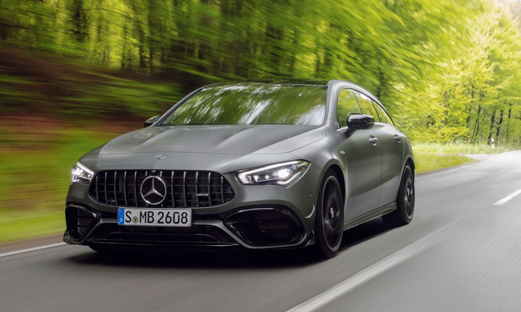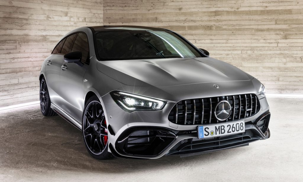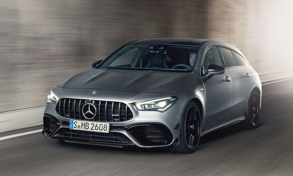 A lépcsőshátú CLA mintájára a kupés vonalú kombi is rögtön kétféle kivitelben érkezik. A CLA 45-ben a kétliteres motor 387 lóerőre és 480 Nm-re képes, néhány lóerővel már ez is több az elődjénél,