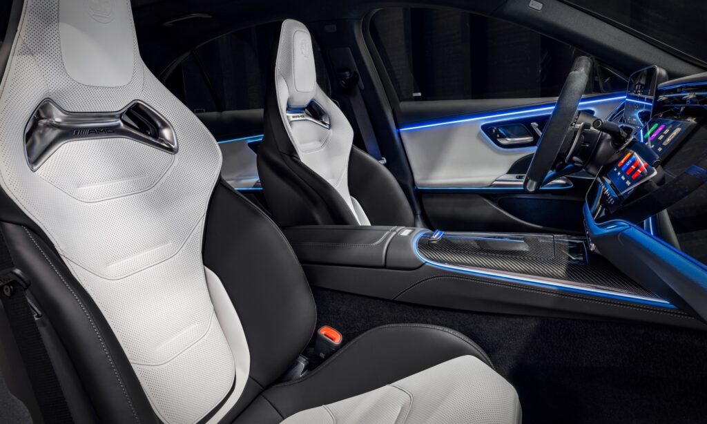 Feszesen tartó kagylóülései a vezetőnek szólnak, az MBUX fedélzeti rendszer pedig akár pihenni is segít az utasnak.