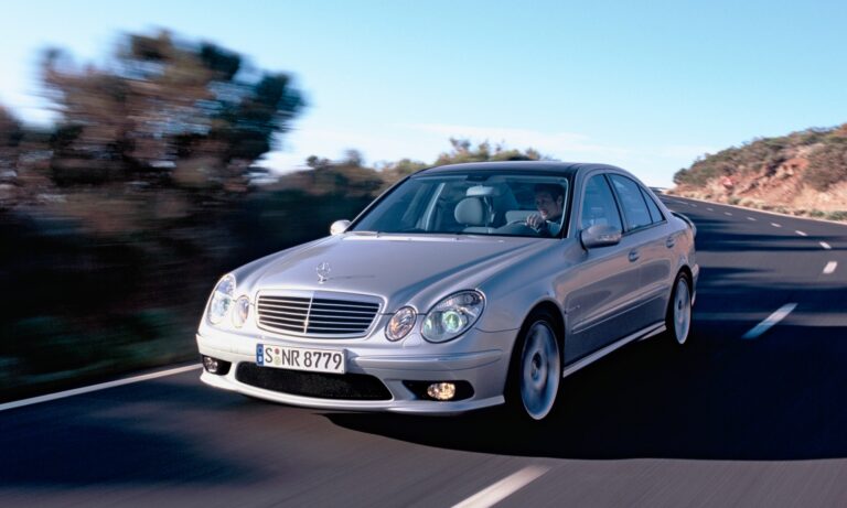2003-ban még Nemzetközi Év Motorja díjat is nyert a Mercedes-Benz E 55 AMG 5,4 literes, IHI kompresszorral szerelt V8-asa, mely 476 lóerős és 700 Nm nyomatéka van. Utóbbi miatt a régebbi 5 fokozatú automata váltóval szerelték, mert a 7G-Tronic-nak ez túl sok lett volna. A limuzin és kombi karosszériával elérhető E 55 AMG 5,4 másodperc alatt gyorsul 100-ra.