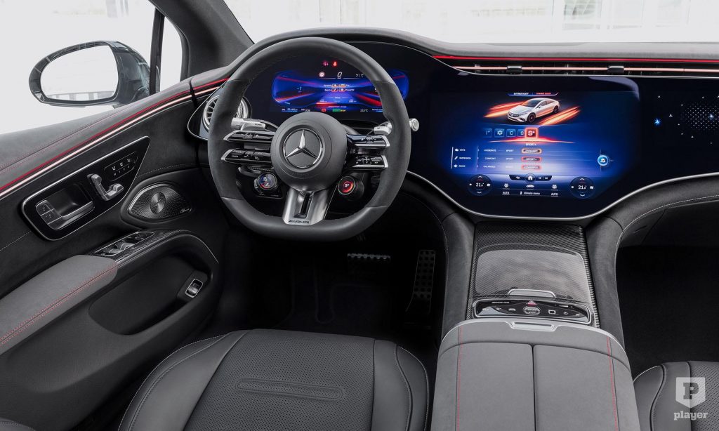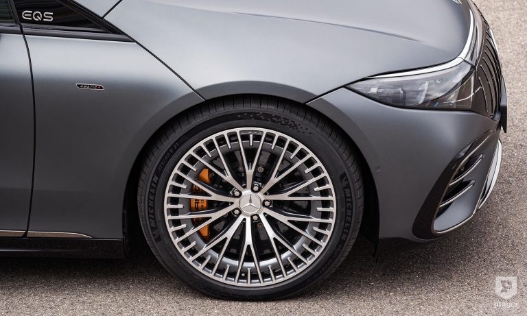 Az AMG-féle EQS természetesen összkerékhajtású, és sportmódban több nyomaték jut a hátsó kerekekre. Széria a hátsókerék-kormányzás, a légrugózást az AMG szakemberei hangolták az autóhoz, és akár karbonkerámia fékek is lassíthatják a Mercedes limuzinját.