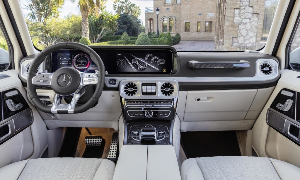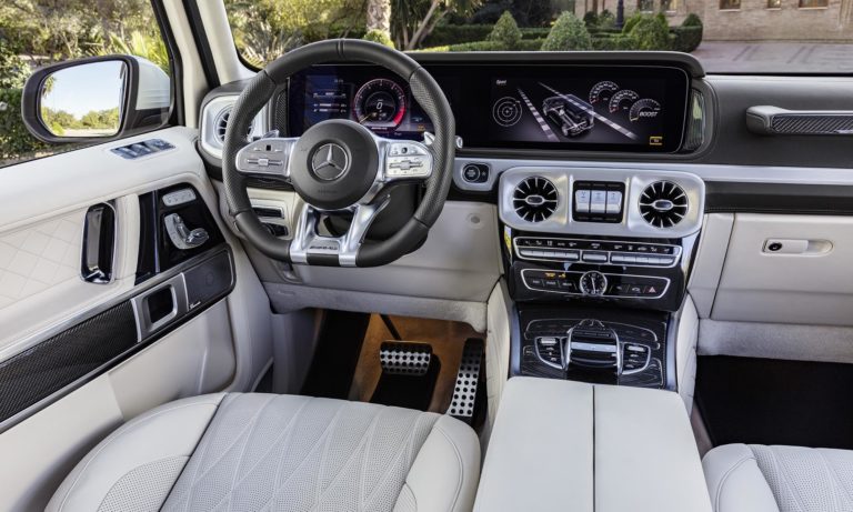 Az új G 63 AMG ugyanis 175 kilogrammal könnyebb is az elődjénél, a tömege 2,5 tonna alá csökkent, ami azt jelenti, hogy a kilencfokozatú automatával a gázpedált a padlóig taposva 4,5 másodperc alatt gyorsul 0-ról 100 km/órára, jó egy másodperccel hamarabb, mint az elődje. A végsebessége 220 km/óra, de az AMG Driver’s csomaggal 240-ig is kitolható a leszabályozás.