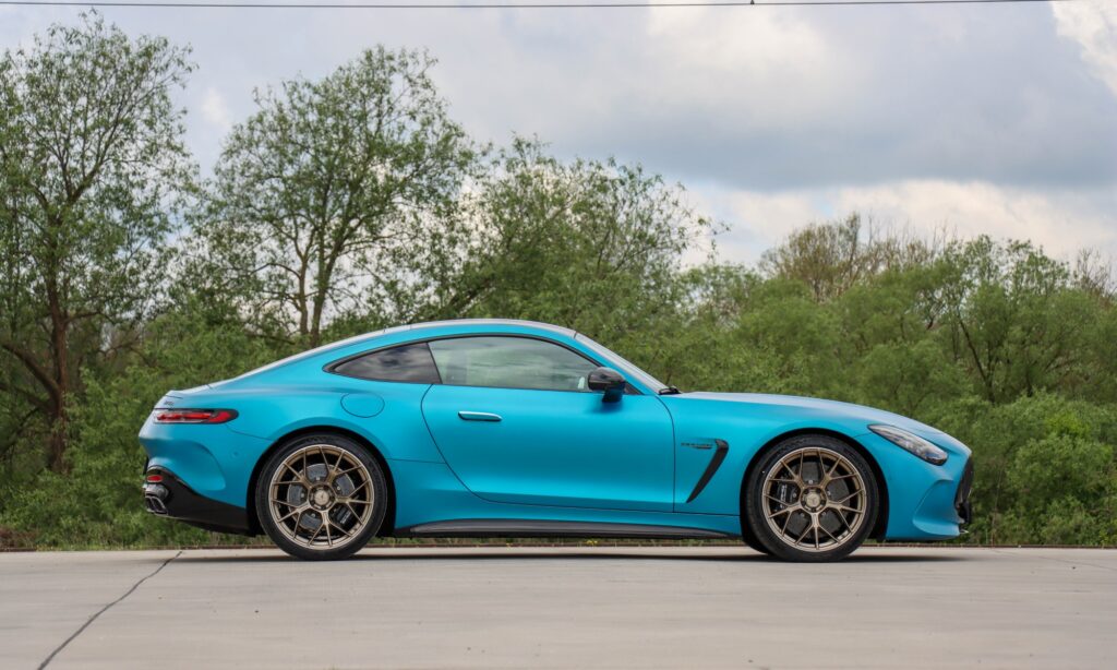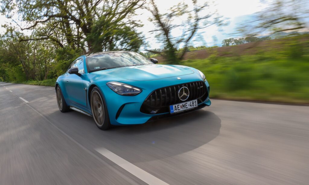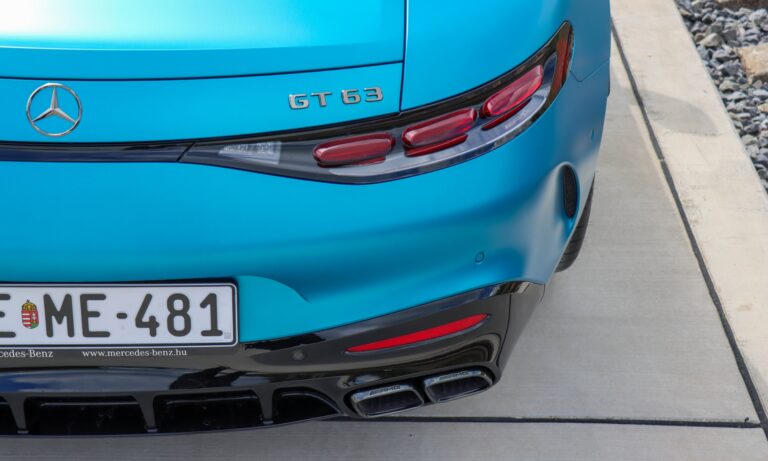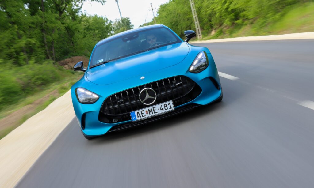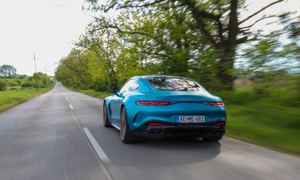 Adaptív tempomattal, okos LED fényszórókkal és egy seregnyi vezetéstámogató rendszerrel a Mercedes-AMG GT 63-mal utazni is könnyű élvezet. A kabin csendes, a kagylóülések pedig távolról sem annyira szigorúak, mint amilyennek kinéznek, fűthetőek és szellőztethetőek is. Az ajtózsebek nem túl nagyok, de a középkonzolon van két pohártartó, ami hasznos azokban az időkben, amikor autópályán peregnek be a kilométerek. Nem azt mondom, hogy az 585 lóerős biturbó V8-as sokat fogyaszt, inkább csak a 70 literes tankot tartom szűknek az étvágyához.