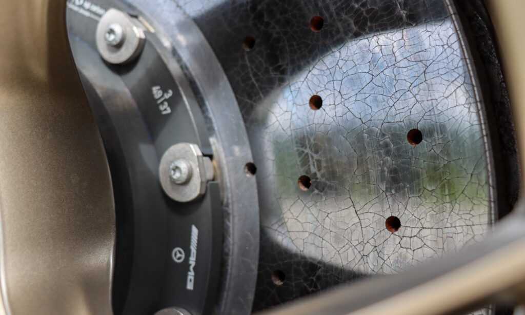 Eszeveszett bosszúvágy van a biturbó V8-asban, ezért 585 lóerővel a talpam alatt én is béklyónak érzem a zsúfolt várost, értetlenül ingatom a fejem minden piros lámpára és hiányzik a tükörben integető hátsó szárny látványa is. Mert a GT 63 akkor igazán szexi, amikor hegyi szerpentinen suhan vagy versenypályán izzik alatta a bitang karbon-kerámia rendszer. Fáradhatatlanul akasztanak övre, pedig két tonnát kell meglassítaniuk az elöl hat-, hátul egydugattyús fékeknek.