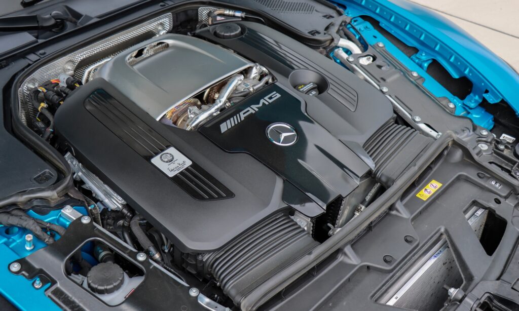 Szakított az R192-es a szárazkarteres kenéssel és a transaxle elrendezéssel, ebben a GT-ben már hagyományos az olajzás és a kilencfokozatú automata váltó nem a hátsó tengelyen, hanem közvetlenül a motor mögött van. Az M177-es kódú 4,0 literes, biturbó V8-as motor a GT 63-ban 585 lóerős és hegyeket mozgató 800 Nm nyomatéka van már 2500-as fordulattól egészen 5000-ig.