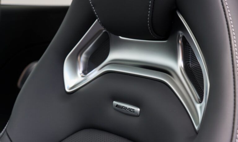 Hidegfényű kontúr világít az automatikusan kiemelkedő kilincsek körül, a Digital Light LED-es fényszóró projektorai pedig animációt vetítenek az autó előtti sötétségbe, az utasteret pedig beragyogja a két kijelző és a hangulatvilágítás fénye. A Mercedes-AMG GT minden útnak megadja a módját, a fényűzés már akkor töményen árad belőle, amikor kinyitom a keret nélküli ablakos ajtót. Mielőtt beülök, imádok rápillantani az ajtókárpitról műszerfalra futó határozott élre, amivel körbeölel a GT 63.
