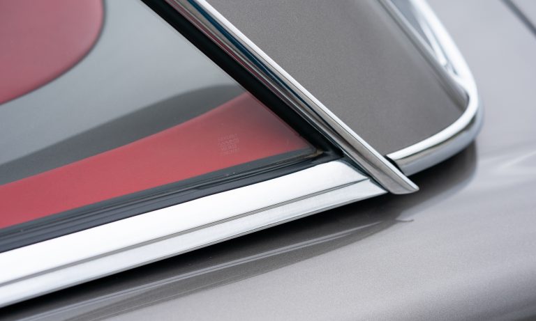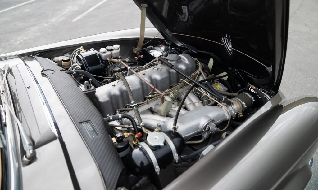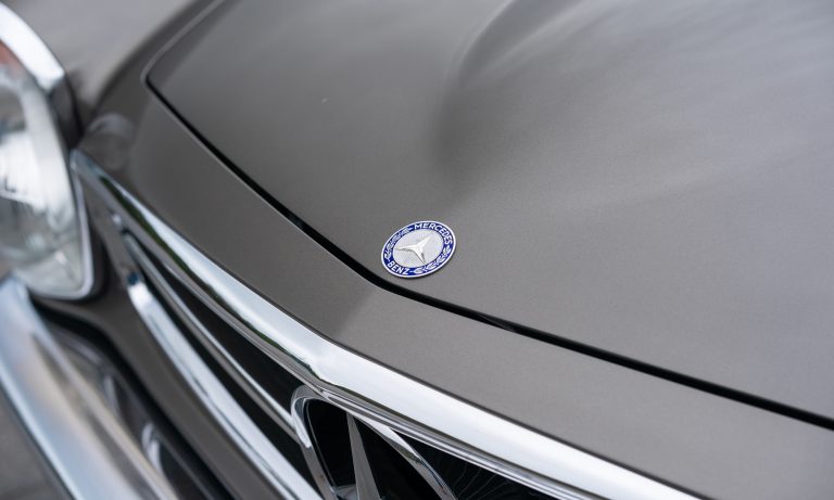 Ahogyan a korszak legtöbb Mercedese, úgy az SL is állólámpás, de sportos vonalat erősítve nem a gépháztetőn áll a háromágú csillag, hanem az előre döntött hűtőmaszkot uralja középen. Vonalai letisztultak, részletei pedig végtelenül mívesek. Ez nagyszerűen látszik ezen az 1967-es szürke autón, aminek minden krómja olyan, akár a tükör és párhuzamos minden illesztése. Ez valójában évekig tartó restaurálás rendkívül látványos eredménye.