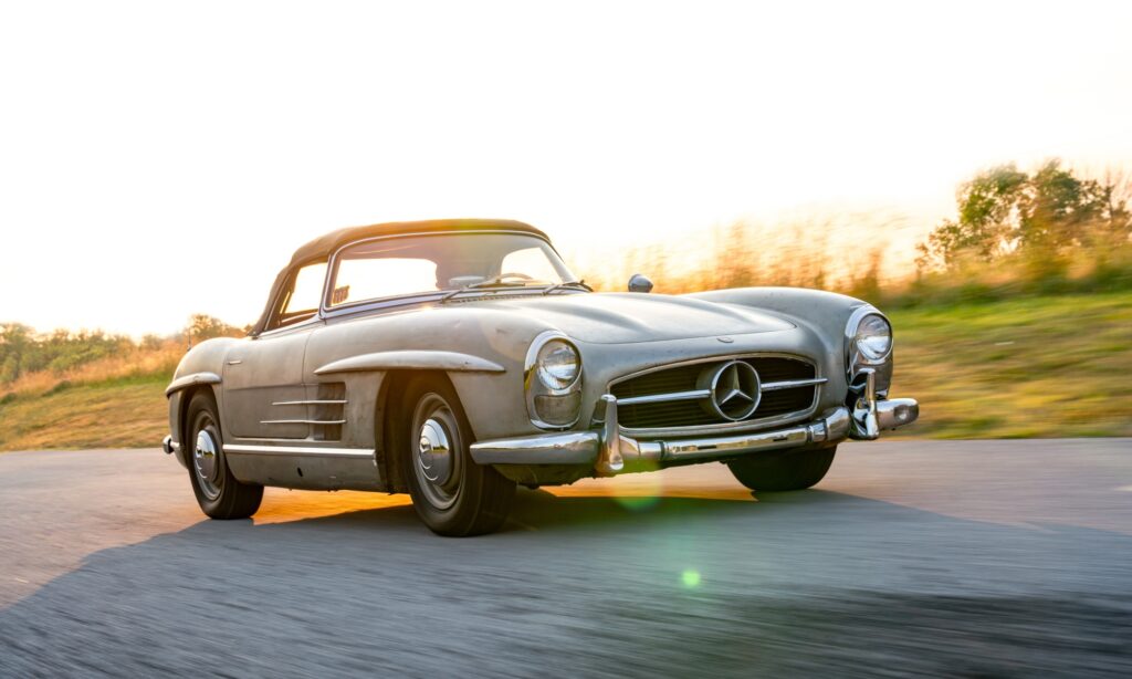 Nincsenek csillogó krómok, tükörfényű karosszéria és tökéletesen feszülő bőrkárpit sem ebben az 1957-es Mercedes-Benz 300 SL Roadsterben, de minden egyes év nyomot hagyott rajta, és ettől elképesztően szép.