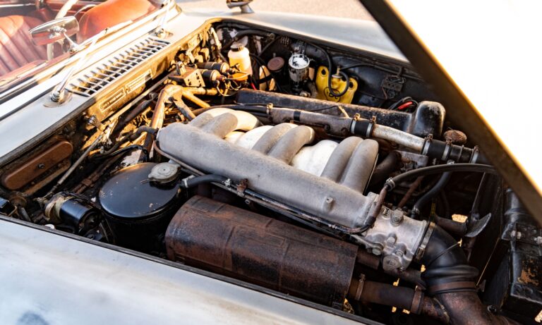 Varázslatosan néz ki minden egyes karcolás, horpadás és javítás ezen az autón, mert minden pontja egy érdekes történet, rajta van az évtizedek nyoma. Minden dokumentáció, az autóhoz járó szerszámok és a legelső rendszáma is ott lóg a görbe lökhárítóján. Kopottas a 240 lóerős, 3,0 literes, sorhatos motor az előrefelé nyíló gépháztető alatt, de gondos karbantartással még mindig készen áll az autózásra. Sokak szemében ez nem az az állapot, ahogyan a gyűjteménybe állítaná, de valójában éppen ez áll a legjobban egy veteránnak.