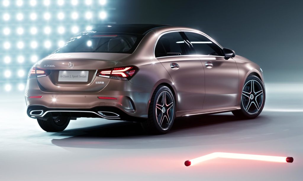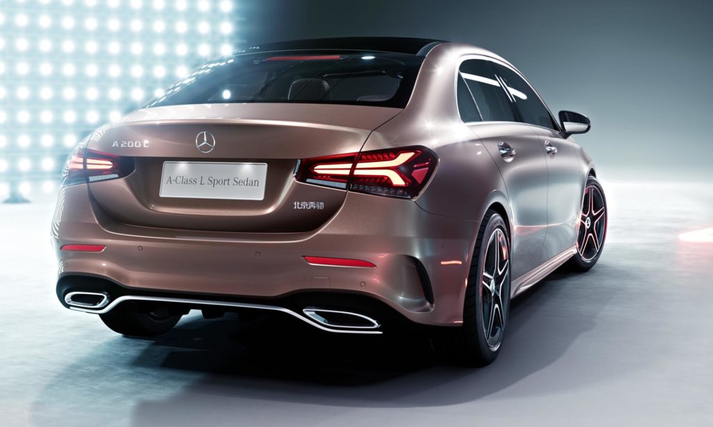 A nyolcvanas években a 190-es Mercedes a 4,42 méteres hosszával elég kompaktnak számított ahhoz, hogy megkapja a Baby Benz becenevet. Ahogyan az lenni szokott, a C-osztály névre keresztelt utódai annyira megnőttek, hogy mostanra helye lett egy még kisebb szedánnak. A pekingi autószalonon leplezte le a Mercedes az új A-osztály lépcsőshátú változatát, méghozzá rögtön a helyi piacra szánt, nyújtott tengelytávú kivitelben.