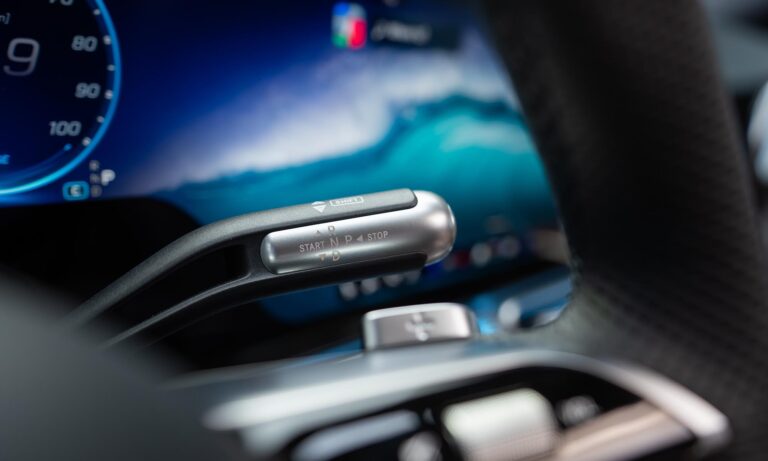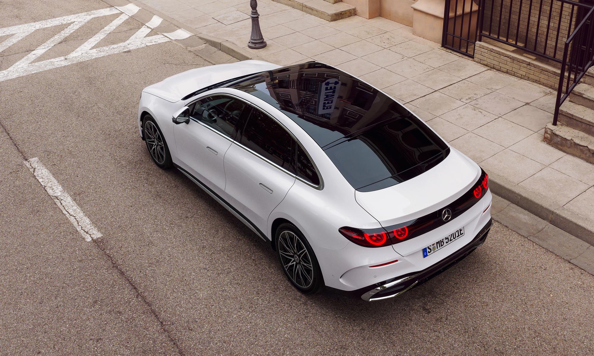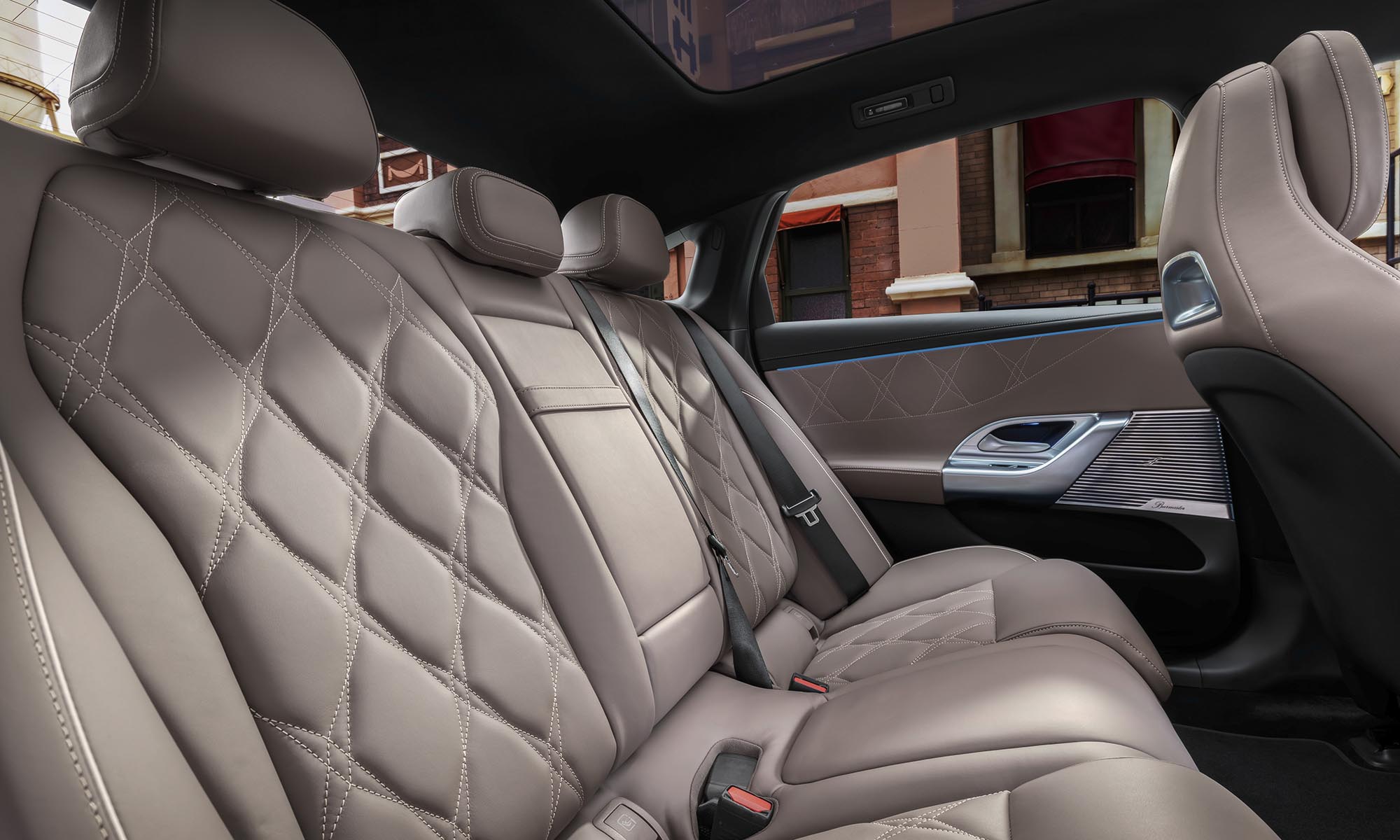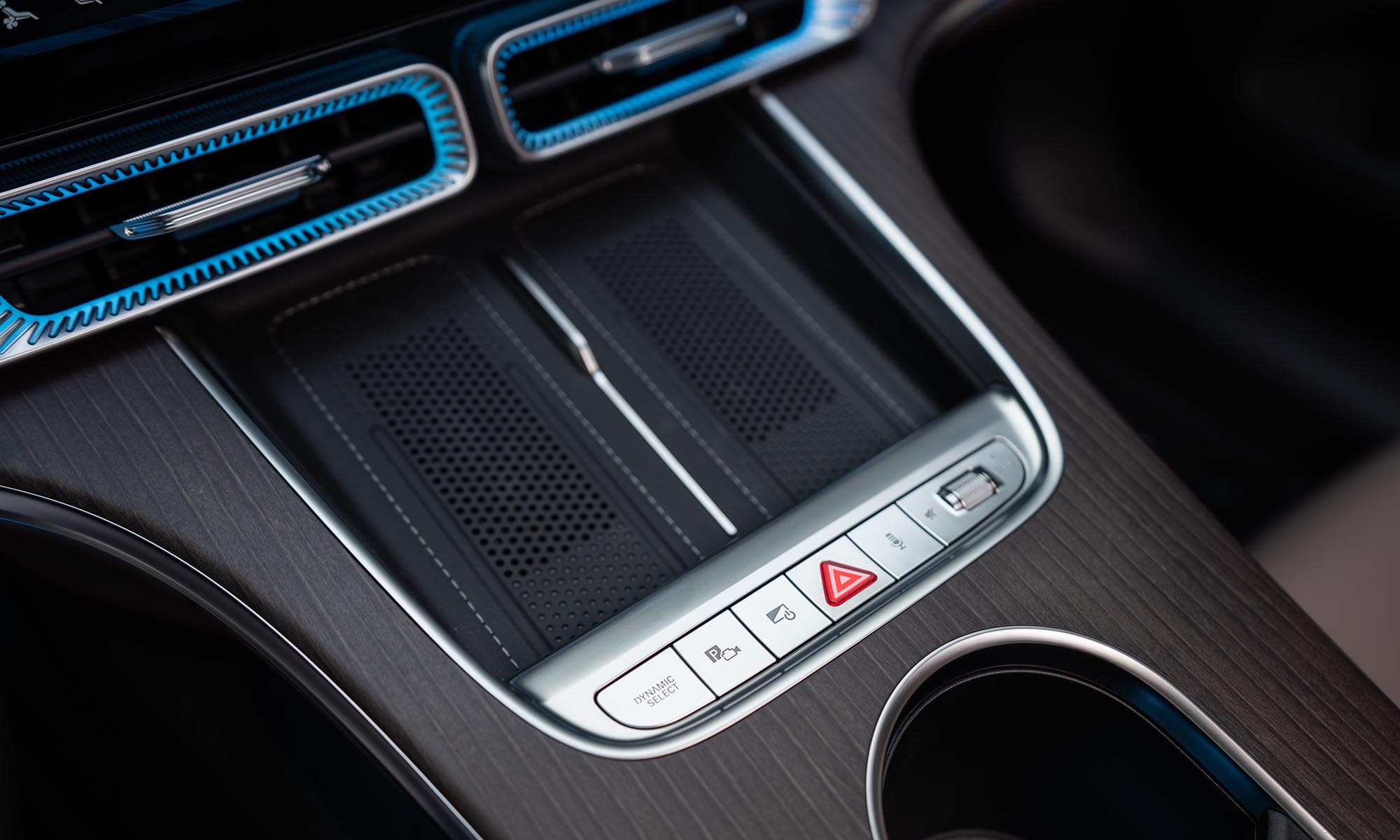 ami nem több képernyőből áll össze, hanem tényleg ekkora egybefüggő digitális felület. Nem kevésbé látványos a középső felszereltség műszerfala sem, hiszen a dizájn ugyanaz, de egy 10,3 colos műszeregység és két 14 colos érintőképernyő adja össze, a belépőmodellnél az utas oldalán képernyő helyett megvilágított dekorációval. Szintén látványos a panorámatetőbe integrált 162 világító csillag, amelynek színe a hangulatvilágításhoz igazodik.