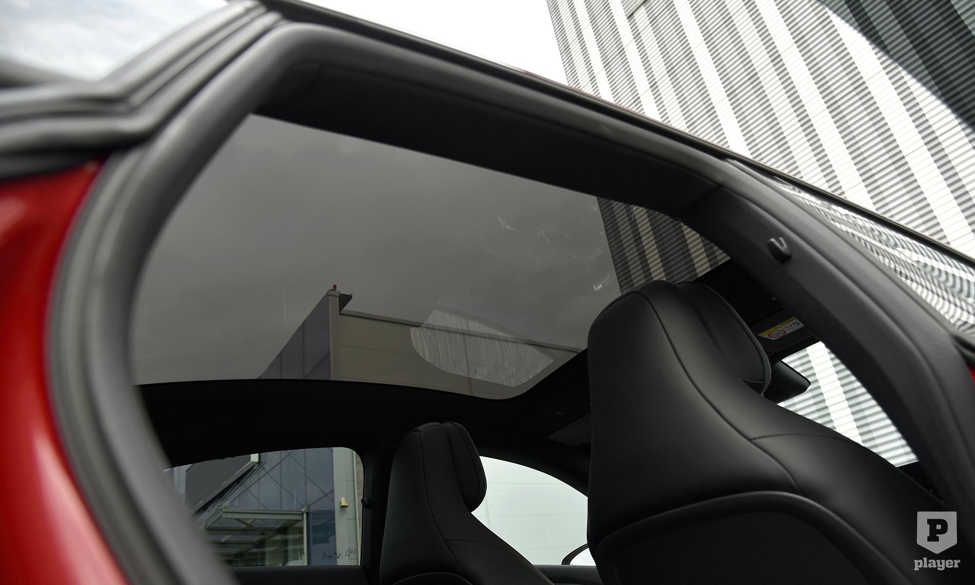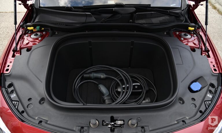 És vezetni is jó. Nem SUV, tehát alacsonyan ülhetünk egy alacsony autóban, hátsókerék-meghajtású, pontos a kormányzása, feszes, de a kényelmes utazással összeférhető a futóműve, jól adagolható a fékerő, a rekuperációt a legerősebbre állítva pedig akár egypedálos módban is autózhatunk. Százas tempó felett érezni, amikor egyesből kettesbe vált a kétfokozatú váltó, a végsebesség 210 km/óra.