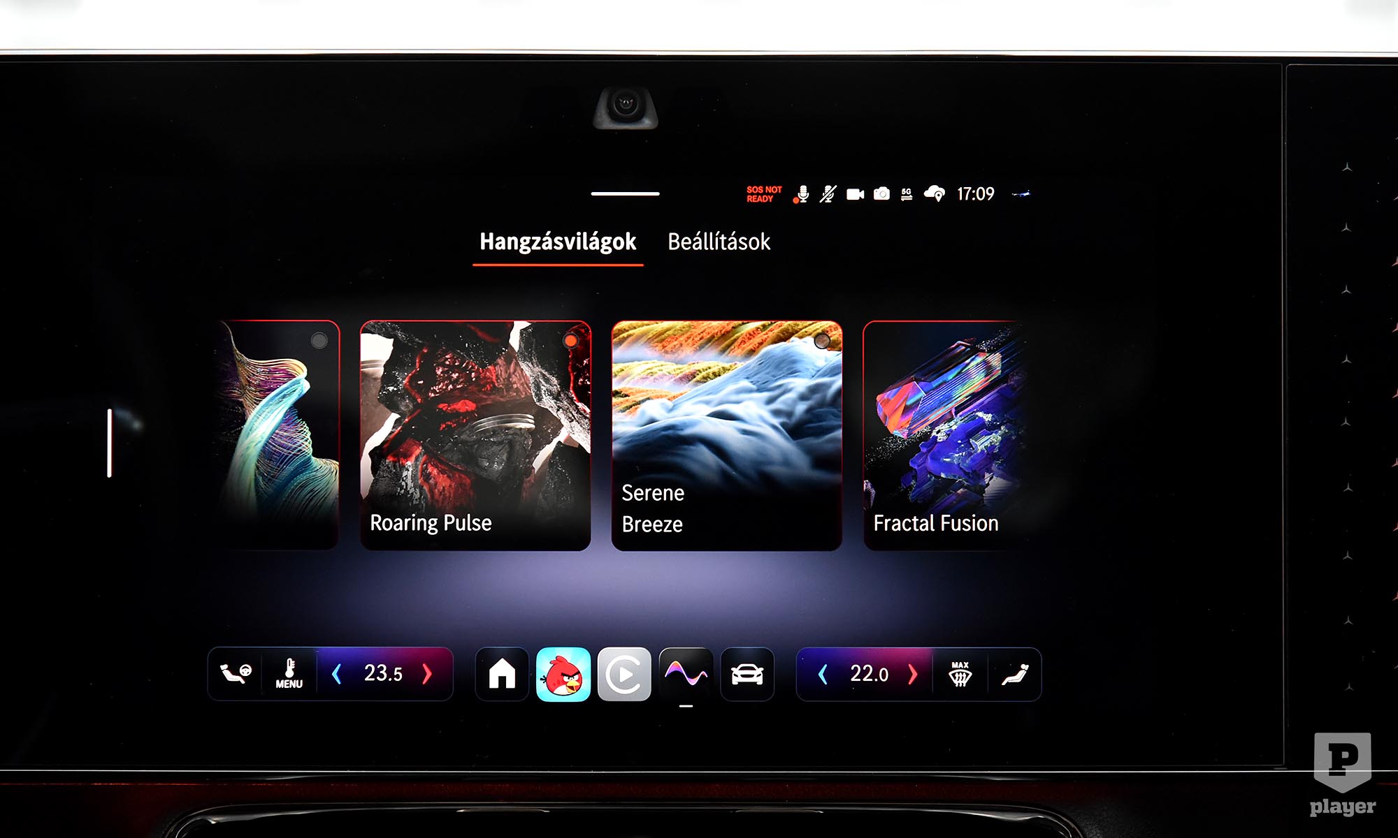 Az új CLA elektromos változata sok igénynek akar megfelelni. Rengeteg digitális szolgáltatást kínál, égboltnyi világító csillaggal próbálja megnyerni az erre fogékony generációt, miközben egy különösen nagy hatótávolságú, takarékos, gyorsan feltölthető elektromos autó is, amely – még ha a klasszikus szó esetében kicsit furcsa is – a hagyományos vezetési élményből is sokat ad. A menüben állíthatjuk be, hogy milyen hangzásvilág legyen ehhez az akusztikus aláfestés.