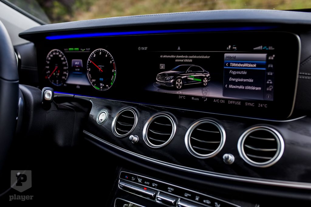 Van lenyűgöző felszereltségű E osztály, a tesztautó csak rendben volt, az utazási komfort viszont tényleg felsőkategóriás. A négyhengeres dízel is kellően kulturált, a villanymotorral és a kilencfokozatú automata váltóval is harmonikus a kapcsolata, az utasok nem éreznek semmit, csak a nyugodt, kényelmes haladást, illetve ha a vezető a jobb lábával kiadja a parancsot, akkor a komoly dinamikát is. Nagyobb utazáskor pedig azt is, hogy az akkuk miatt jócskán, 370 literesre csökkent csomagtér néha bizony kevés.