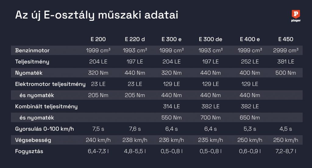 Mi is azzal tettük. Annak ellenére, hogy ebben az autóban dízelmotor dolgozott együtt az elektromos hajtással, meglepően sportos arcát mutatta az E-osztály. Élvezet vele kanyarból kanyarba érkezni, vagy éppen csak egy hosszabb szakaszon lendületesen autózni. Persze azt is megértem, ha sportos helyett a kényelmes légrugóra, és a lendület helyett a stresszmentes utazásra szavaz valaki. Az a jó az E-osztályban, hogy ezt mind tudja, csak megfelelő konfiguráció kérdése.