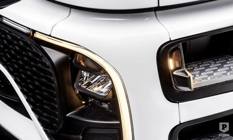 A jelenlegi nyerges vontatókhoz képest feltűnhet, hogy mennyire különleges formájú fülkét kapott a megújult eActros.
