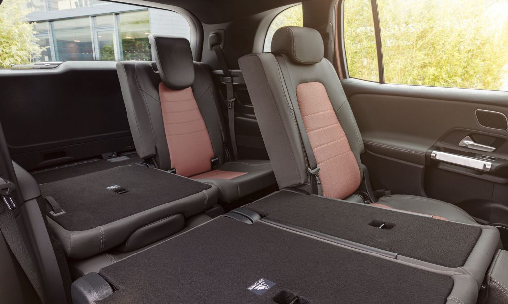 A 4,68 méter hosszú EQB-nek szokatlanul nagy, 2,83 méteres a tengelytávja, ezért kimondottan tágas lehetett a belső. A harmadik üléssorban 1,65 méteres magasságig kényelmesen el lehet férni, és sokaknak fontos információ lehet, hogy akár öt gyerekülést is be lehet szerelni az autóba.