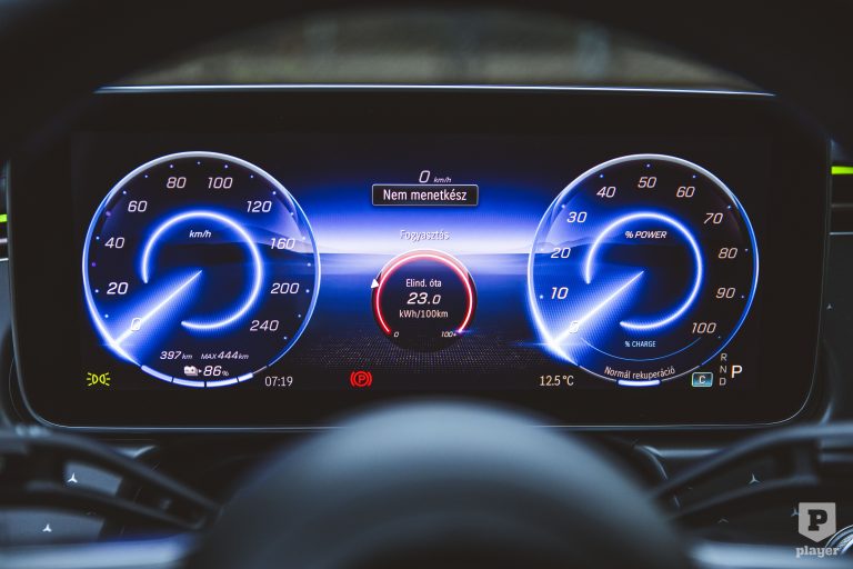 (Apropó vezetéstámogatás: hatalmas pirospont jár a Mercedesnek, amiért a magyar valóságban teljesen hasznavehetetlen új EU-s agymenést, a sebességtúllépést csipogással jelző gyorshajtásra figyelmeztető rendszert egy, a kijelző bal felső sarkában fixen kirakott kis virtuális gombbal könnyen, minden indítás után azonnal, egy mozdulattal kikapcsolhatóvá tette!)