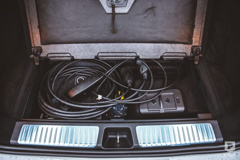A nettó 90,6 kWh kapacitású akku még autópályatempó mellett is biztosan ad 250-300 kilométernyi hatótávot, a 170 kW-os gyorstöltéssel pedig félórás pihenővel újabb 200 kilométerre fel lehet tankolni a kocsit. Az alacsony súlypont miatt a kanyarstabilitás is kiváló, a kocsi tömegét száraz úton egyáltalán nem lehet érezni.