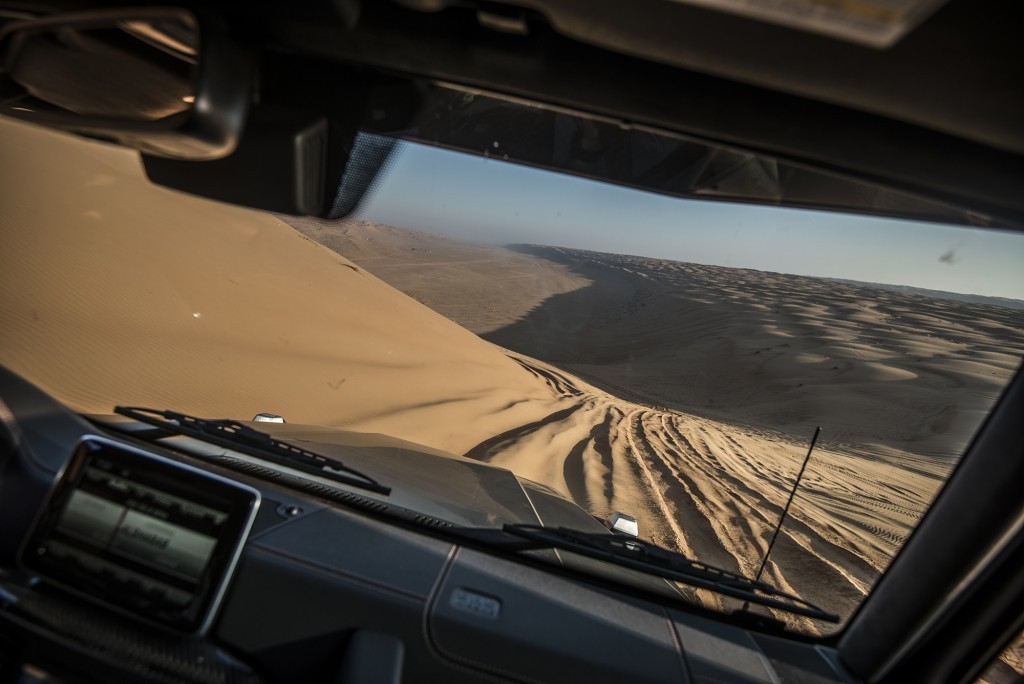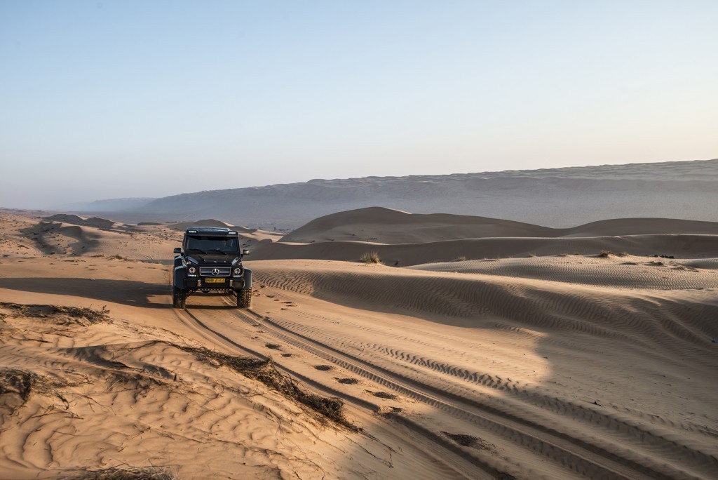 Tudjuk, hogy London belvárosába is szívesen autóznak vele az arab milliárdosok, meg Monacóban is, de ha van hely, ahol tényleg értelme van a G63 AMG 6x6-nak, akkor az a sivatag. GFWilliams az ománi sivatagban lőtt csodás képeket róla.