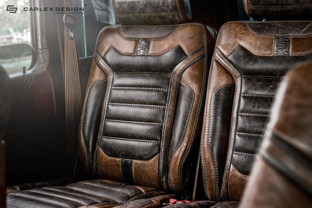 Talán az indexkapcsolót. De így is több marhányi, a kocsi korához tökéletesen illeszkedő sötét- és világosbarna bőrt használt fel a lengyel Carlex Design. Ízlés kérdése, hogy tetszik, de tény, hogy a Ford F–150-eshez hasonlóan igényes munkát végeztek.