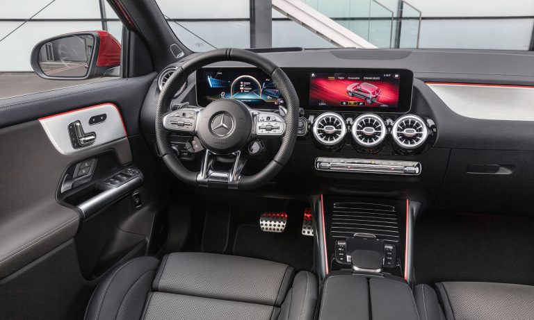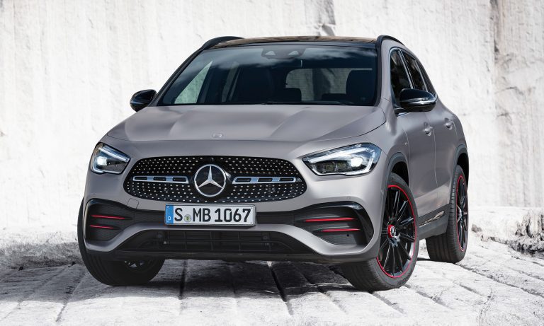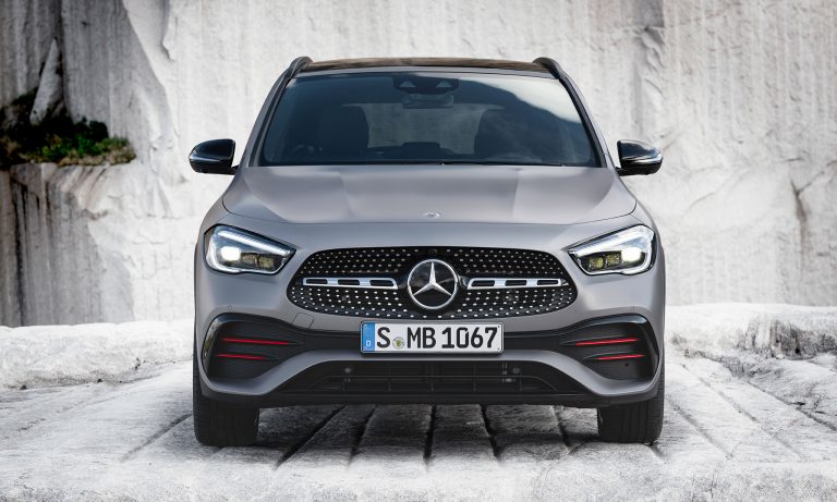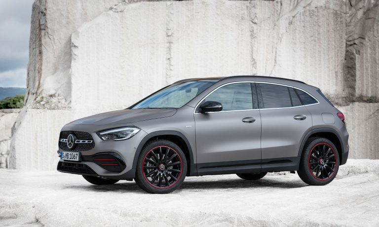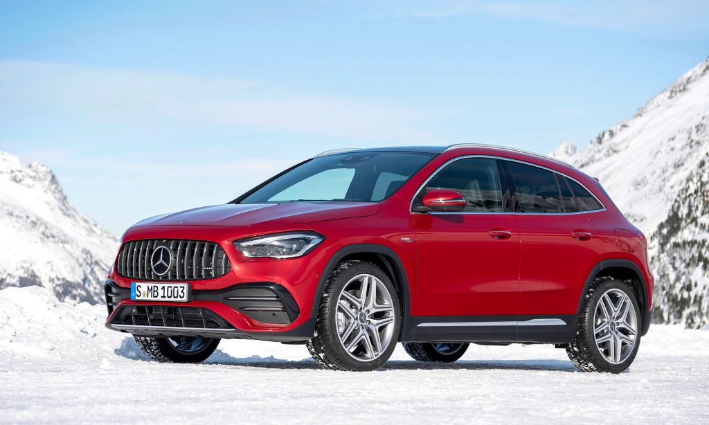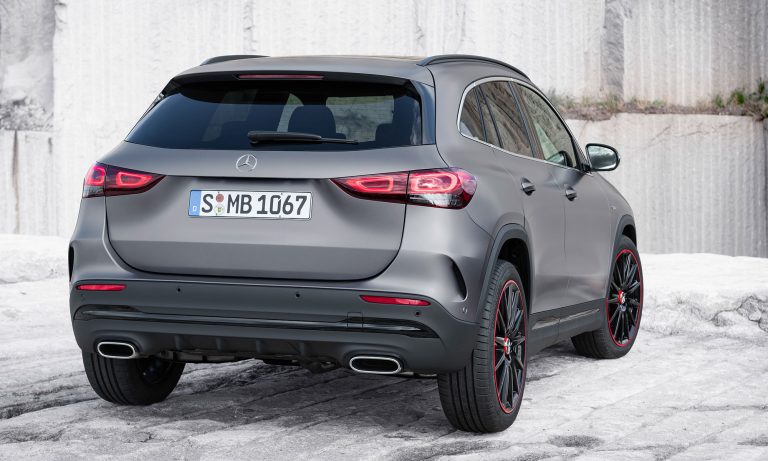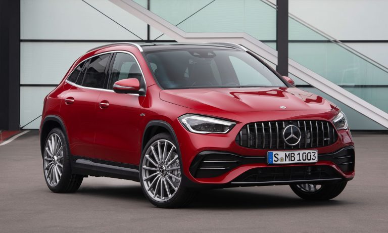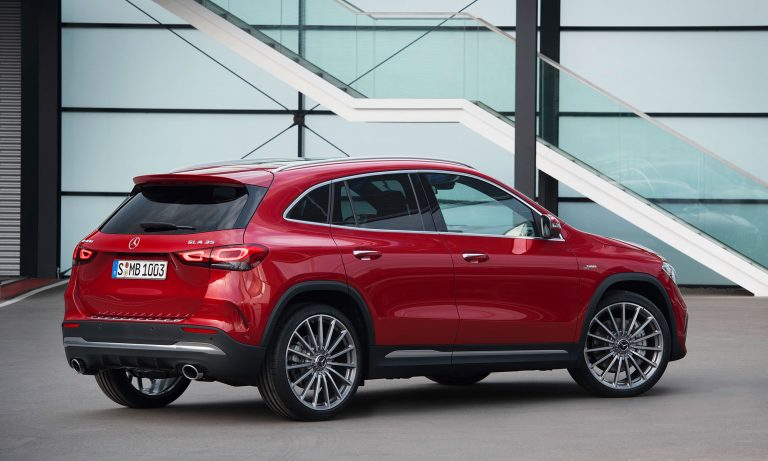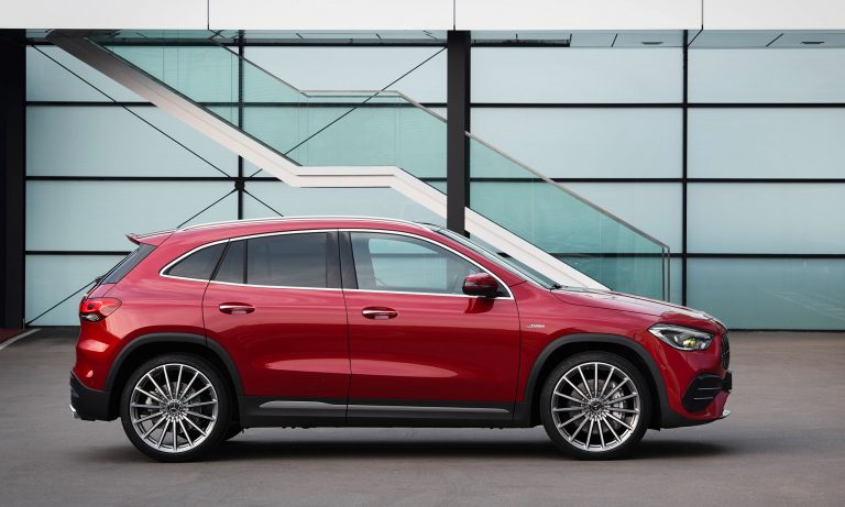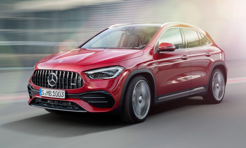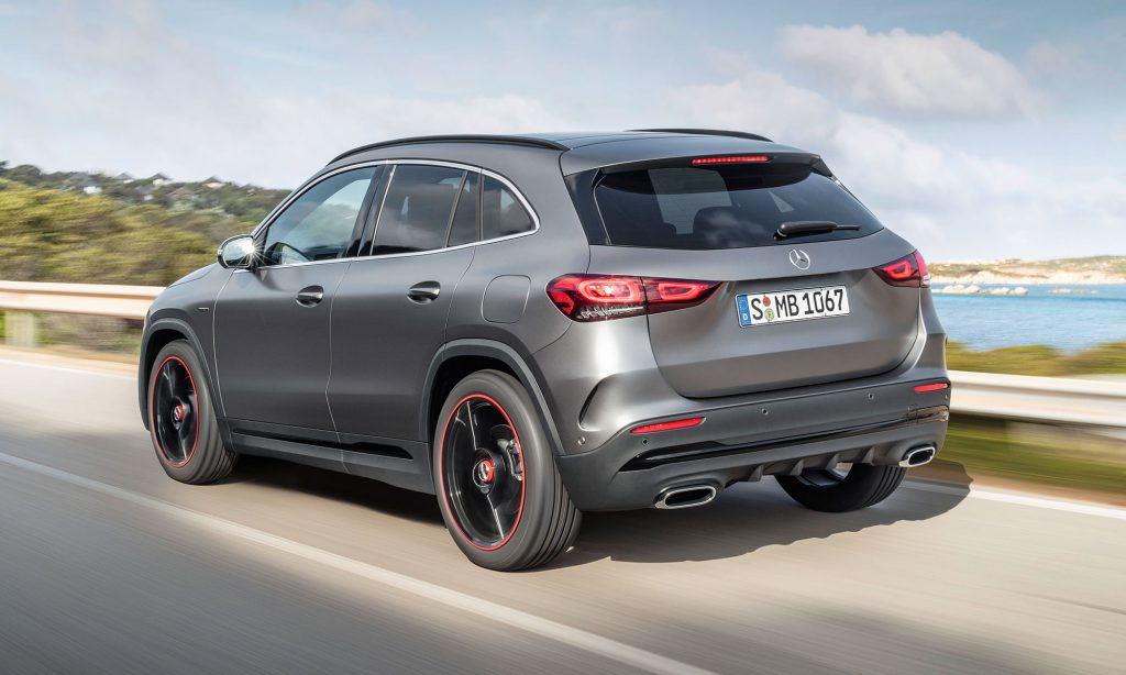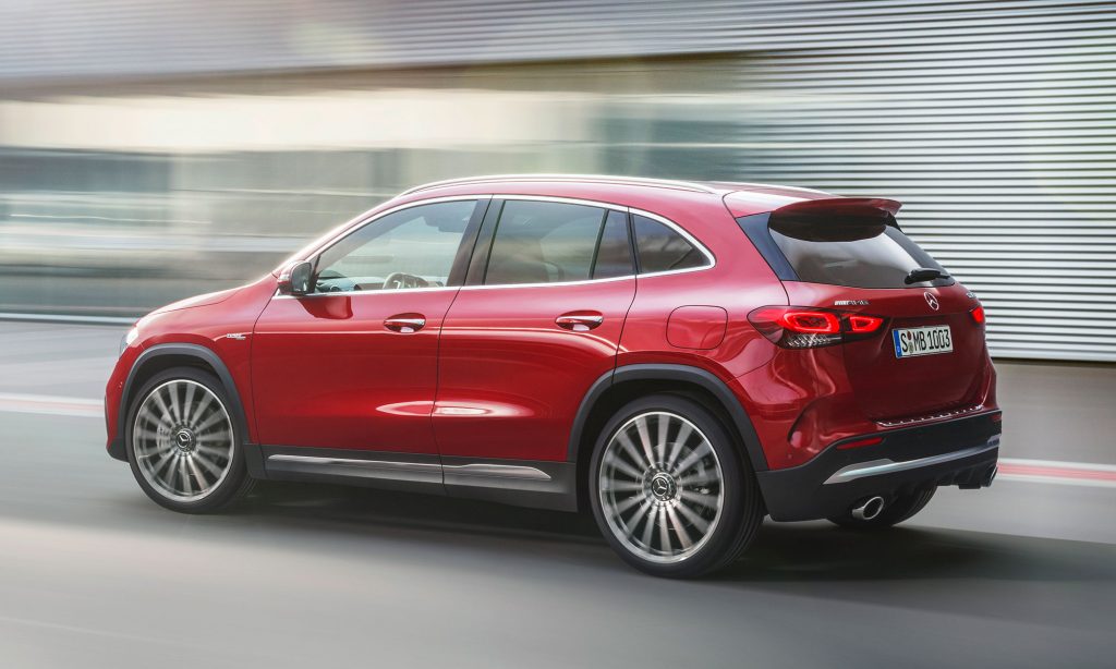 A kétliteres, turbós motor ebben 306 lóerőre képes, 400 Nm nyomatékit ad le, a nyolcfokozatú duplakuplungos váltóval és összkerékhajtással már 5,1 másodperc alatt eléri a százas tempót, a végsebessége 250 km/óránál korlátozott. Az A-osztállyal és a CLA-val szemben az új GLA nem a kecskeméti gyárban készül.
