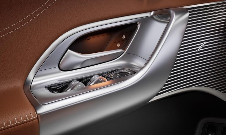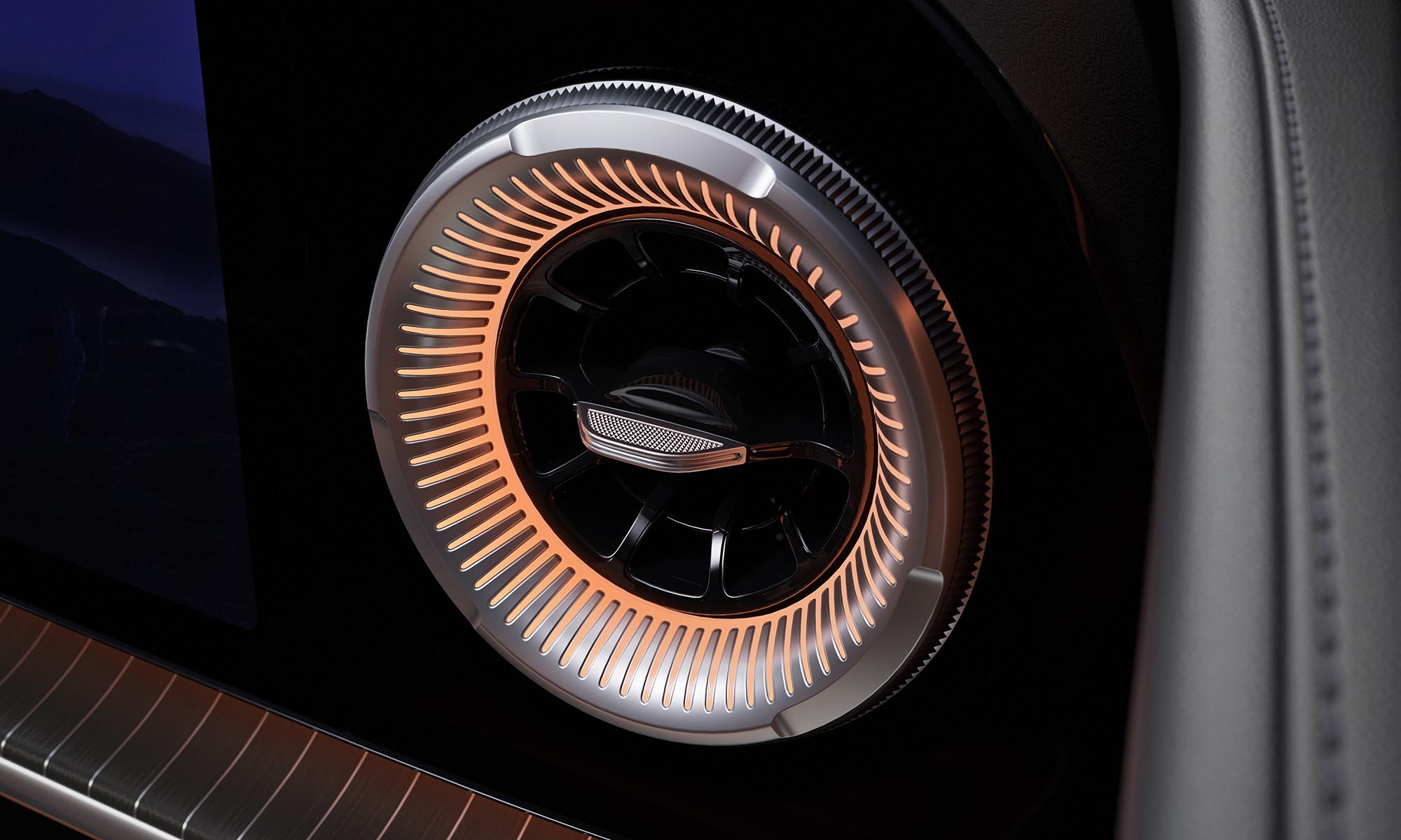 A legfeltűnőbb pedig nem más, mint a hatalmas hűtőmaszk, ami formájával a klasszikus Mercedeseket idézi, de a kerete megvilágított, opcióként pedig a teljes felületét LED-ek borítják be, a 942 darab fényforrással pedig látványos animációk lejátszására képes. A fényszórók és a hátsó lámpák mintája is a háromágú csillagot idézi.
