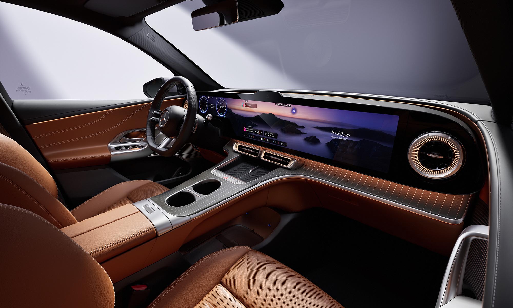 újratervezett, a mesterséges intelligenciát is hasznosító operációs rendszerrel. Szériafelszerelésként három külön kijelző kerül egy közös panel alá, egy 10,3 colos a műszereknek, egy 14 colos középen, és egy ugyanakkora az elöl ülő utasnak. Panorámatetőjét opcióként 162 darab világító csillagocska borítja be.