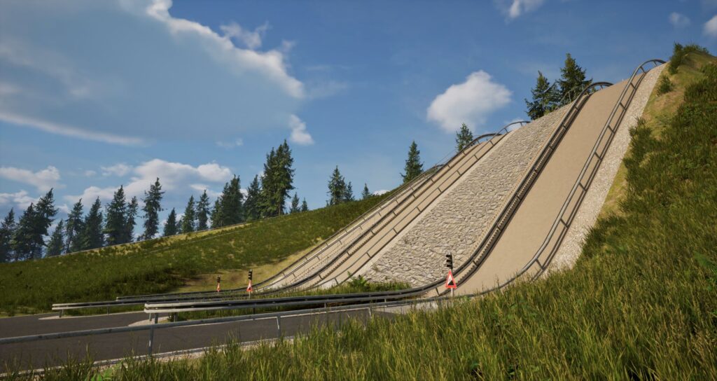 a sávok mellett pedig útjelző táblák és rudakra helyezett, mozgatható emberi sziluettek segítik a valósághűbb környezet megteremtését.