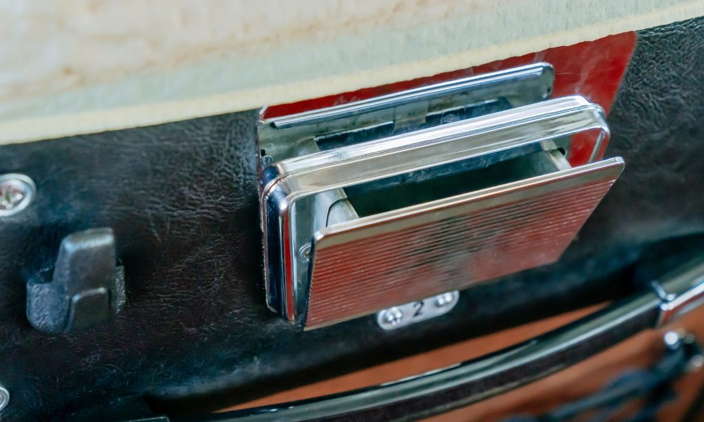 Narancssárga és piros üléshuzatai virítanak az utastérben, minden széken fehér huzattal a fejtámlán, de nagyon jól mutatja az akkori világot a felszereltsége is. Minden ülőhelyen kihajtható hamutartó várta az utazókat, hiszen akkoriban még egész máshogyan álltak a dohányzáshoz.