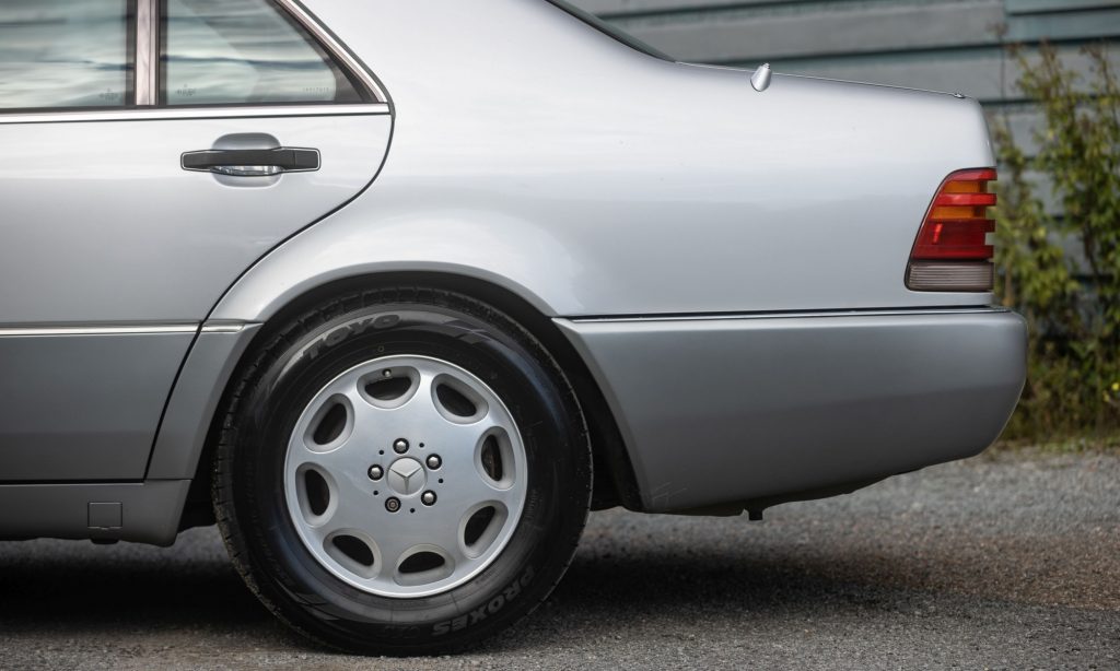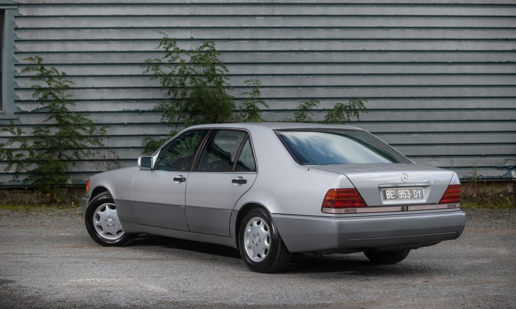 1991. szeptember 9-én kapott francia rendszámot ez klasszikus színösszeállítású Mercedes-Benz 600 SEL, mely visszafogott ezüst fényezése és fekete bőrrel kárpitozott utastere ellenére igazán feltűnő jelenség. A tömbszerű forma ebben a hosszú tengelytávú változatban (3139 mm) érvényesül igazán, amihez már igazán passzol a V12-es motor finomsága. Az M120-as kódú 6,0 literes, tizenkét hengeres szívó benzinmotor 408 lóerős és 580 Nm nyomatéka van, amivel a 2,2 tonnás luxusautó 6,5 másodperc alatt gyorsul 100-ra, a végsebessége pedig 250 km/óra.