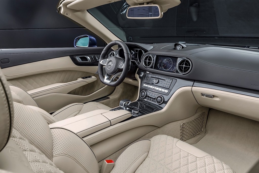 Ez nem az a facelift, ahol keresni kell a módosításokat: újak a fényszórók és a hűtőmaszk (már nem keskenyedik lefelé, hanem szélesedik), határozottabbak a motorháztető domborításai, az oldalsó küszöbök, finoman hozzányúltak a hátsó lámpákhoz, és műszaki újdonságként az SL is megkapta a 9G-Tronicot, vagyis a kilencfokozatú automatát. Hivatalos bemutató a Los Angeles-i Autószalonon lesz, akkor biztosan jönnek még technikai részletek róla, addig nézegessünk sok szép képet.