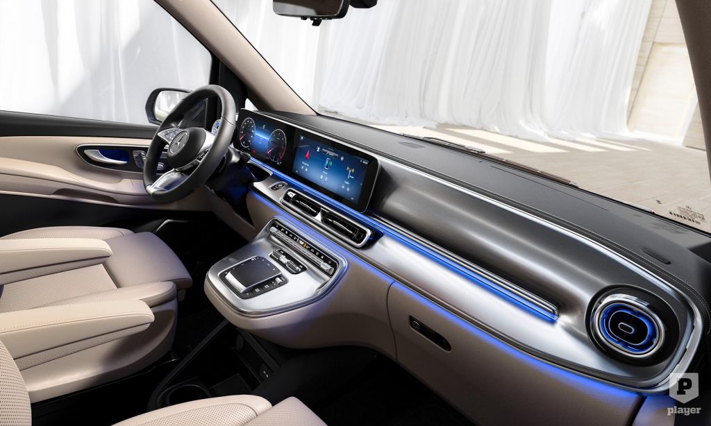 A belső tér nem sokat változott, de mostantól szériafelszerelés a V-osztályban a két 12,3 colos képernyő, és bár a Vito ennél kisebb, 5,5 és 10,25 colos kijelzőket kap, annál is az alapfelszerelés része lesz a legújabb MBUX fedélzeti rendszer. Az idő szavával összhangban a Mercedes a vezetéssegítő rendszereket is frissítette a kisbuszában és furgonjában.