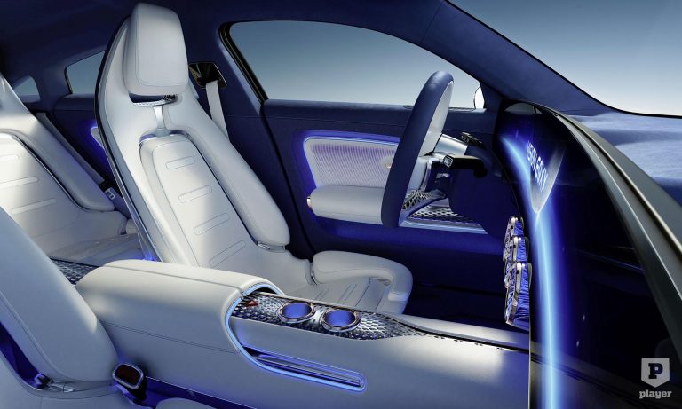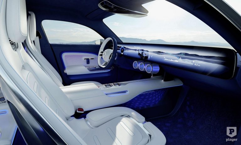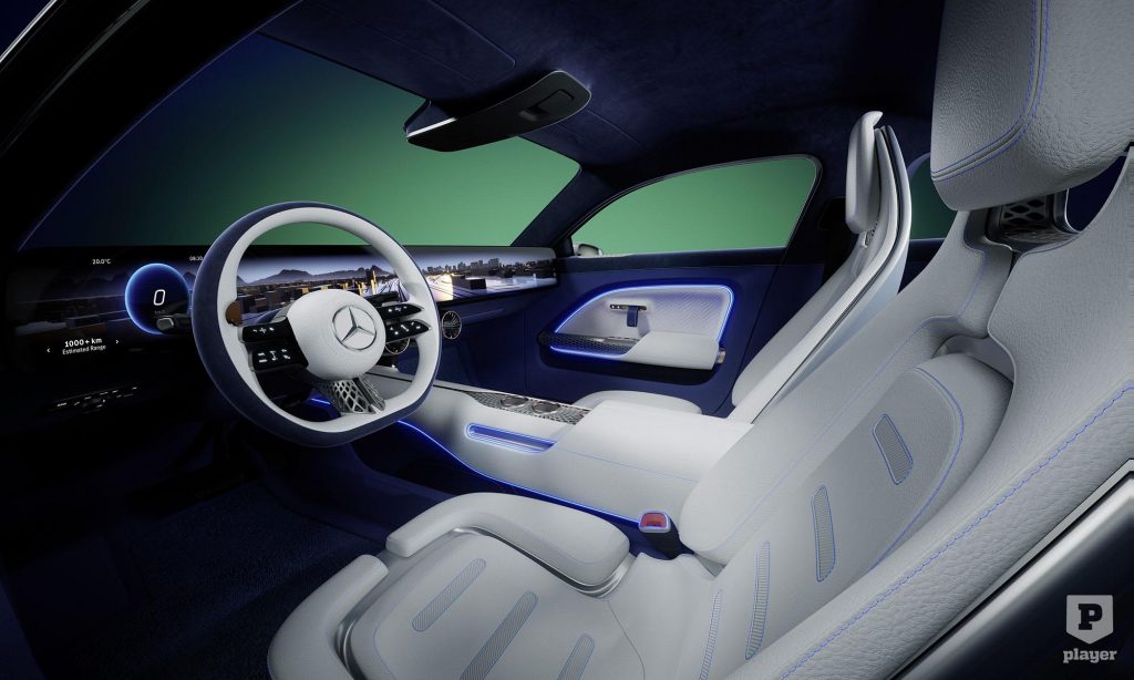 A dizájn szemből nézve a Kia EV6-ra emlékeztethet, de a belső tér már egyértelműen Mercedes-stílusú a jellegzetes duplaküllős kormánykerékkel és a műszerfal teljes szélességét elfoglaló képernyővel.