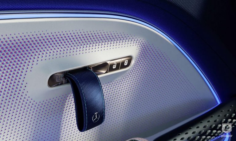 A 120 centiméter széles, 47,5 colos képátlójú kijelző 8K felbontású, és nem több képernyőből áll össze, mint az EQS-ben, de részenként elsötétíthető.