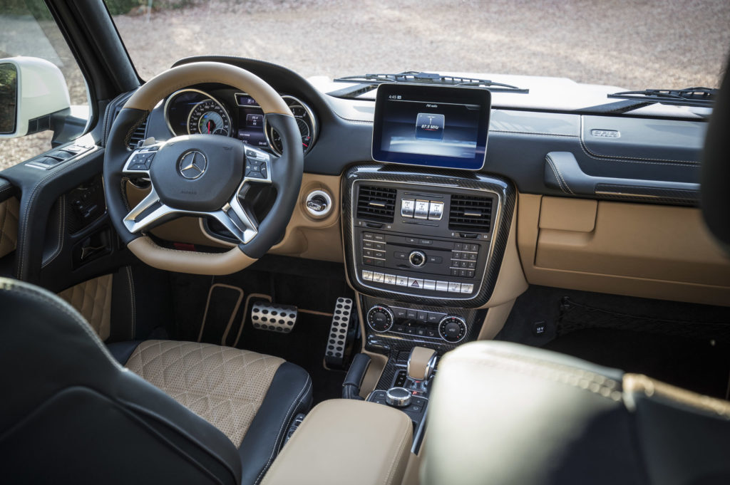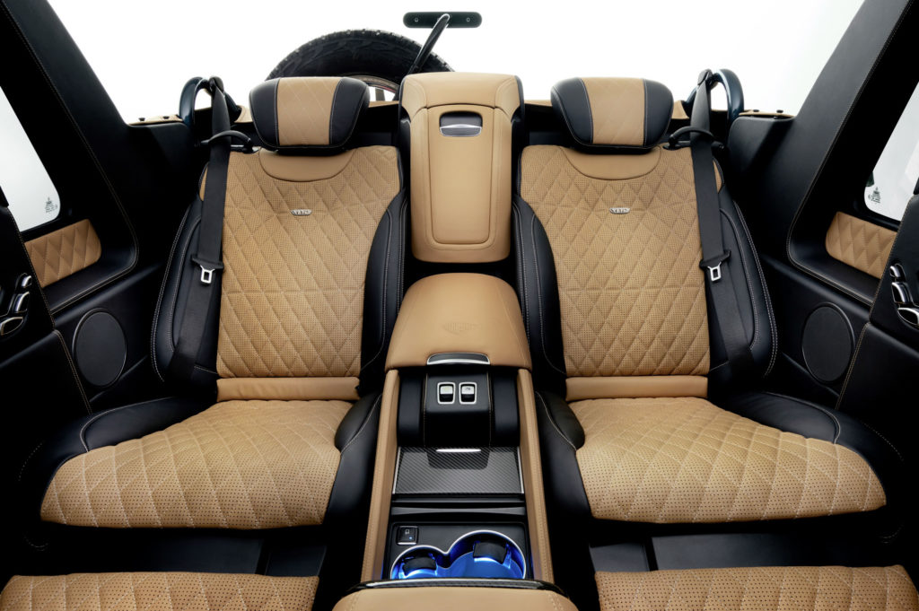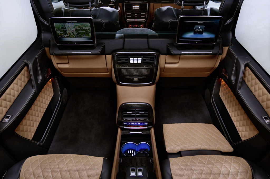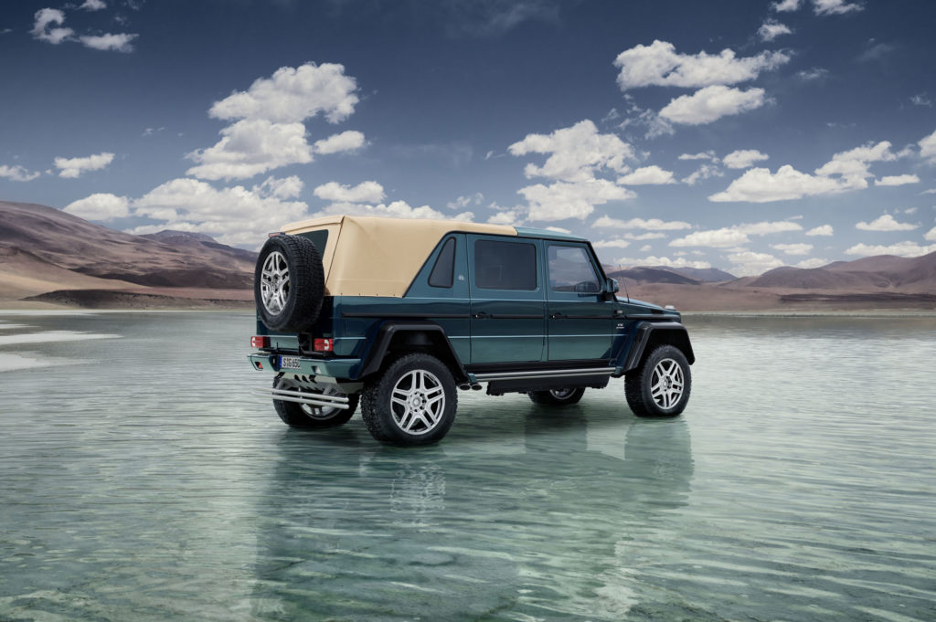 A pompás változathoz még tovább növelték a G-osztályt. A tengelytávját 58 centivel 3,43 méteresre nyújtották, az egész autó pedig 5,35 méter hosszú és 2,24 méter magas lett, amiben a 45 centis hasmagasság és a 22 colos kerekek is szerepet játszanak. A hátsó rész fölötti vászontető gombnyomásra hajtható le, hogy ideális szafarizó autó legyen belőle.