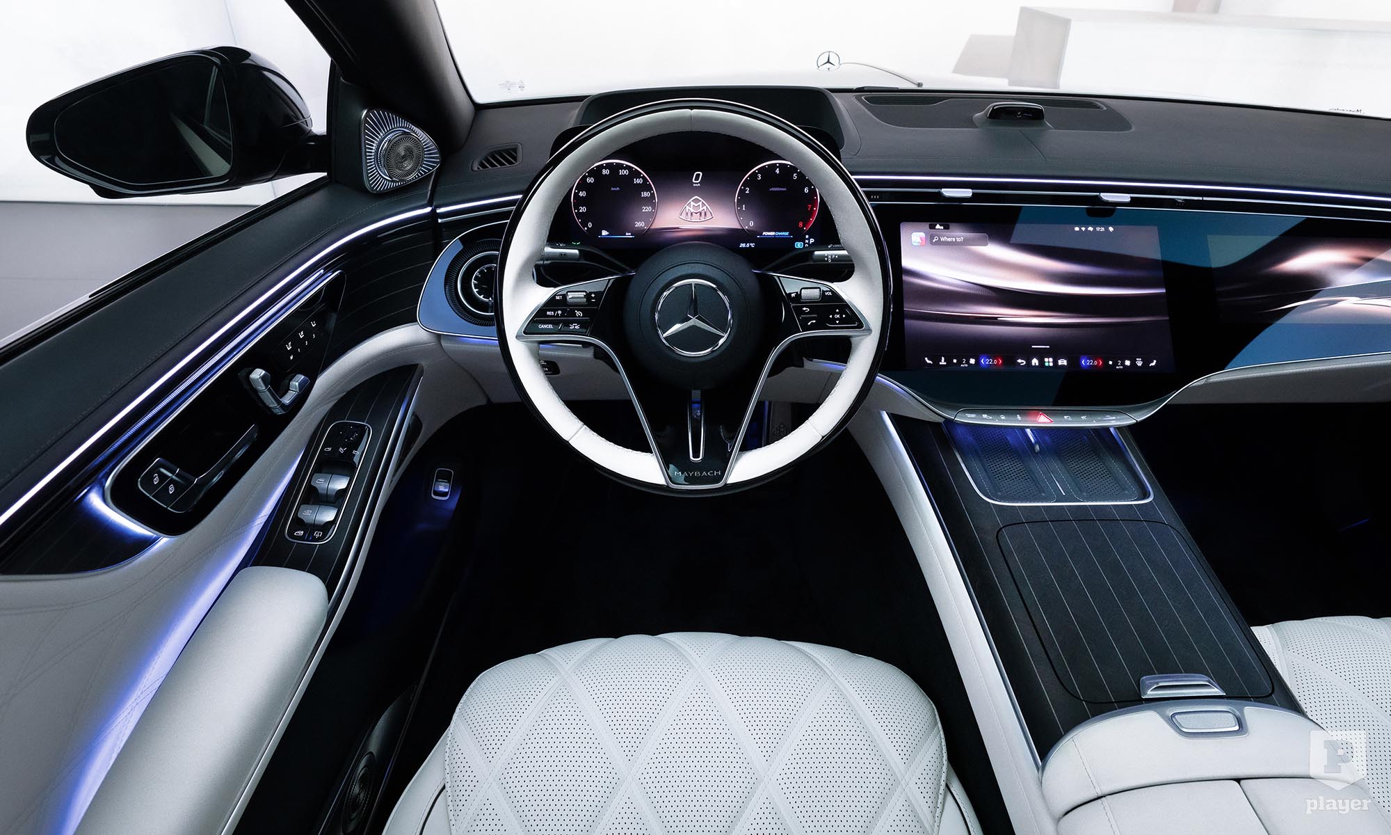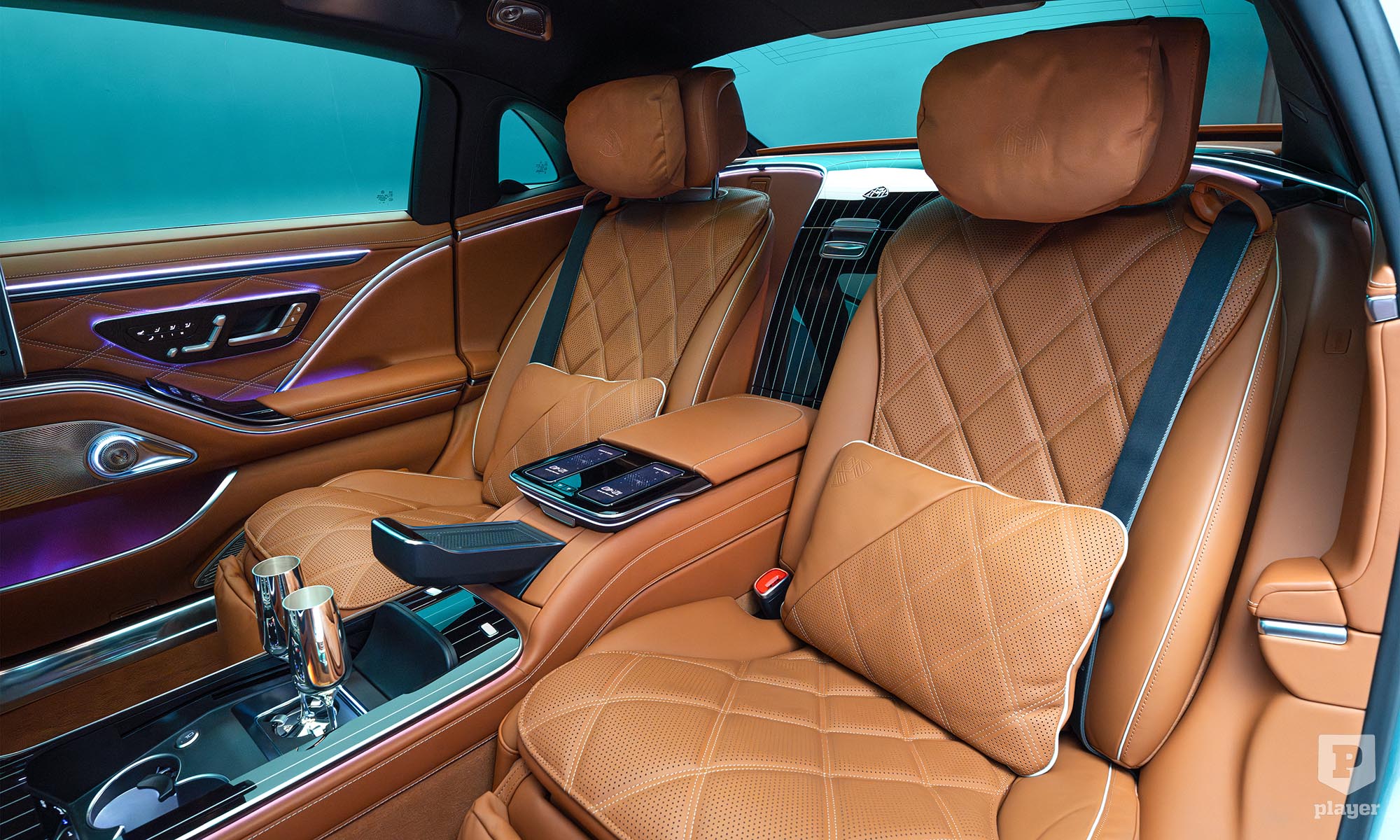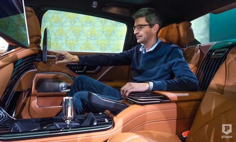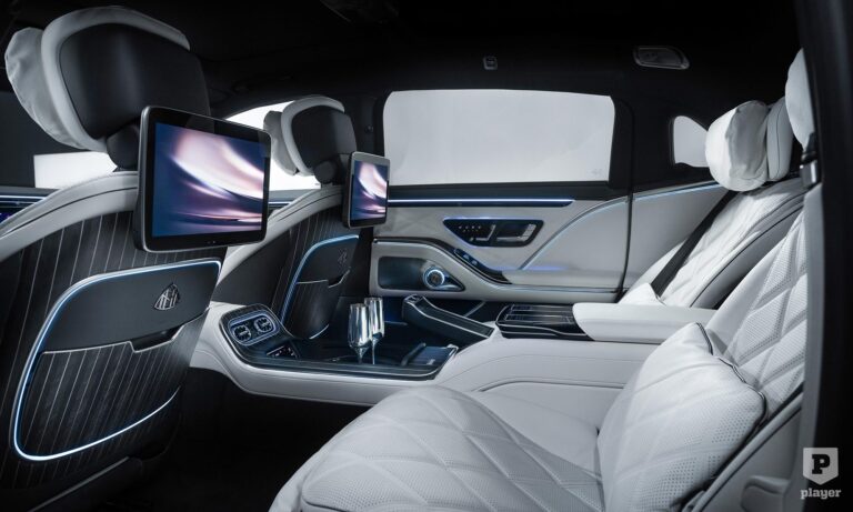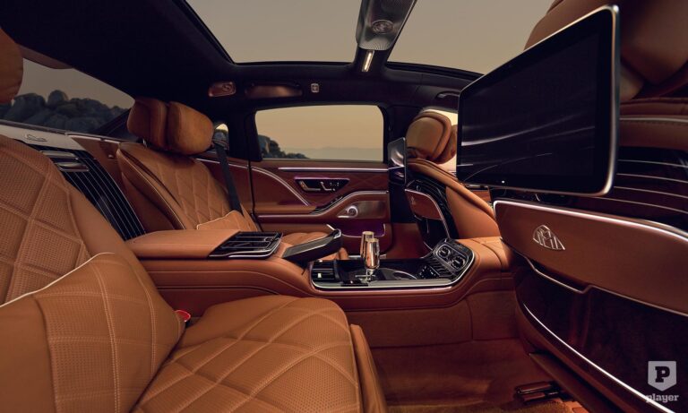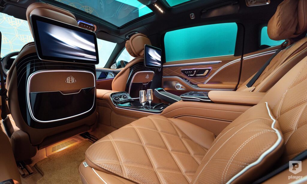 akárcsak a legdrágább luxusautókban. Odabent pompás környezet vár, a magángépekből ismerős fotelekkel, pezsgőspohárral és italhűtővel, és két 13,1 colos képernyővel, hogy ne unatkozzunk út közben. Nemes bőrök és fabetétek közül lehet választani, de a Maybachnál most először bőrmentes belső is kérhető, finom mintájú műbőrrel, valamint lenvászonból és újrahasznosított poliészterből készült textillel.