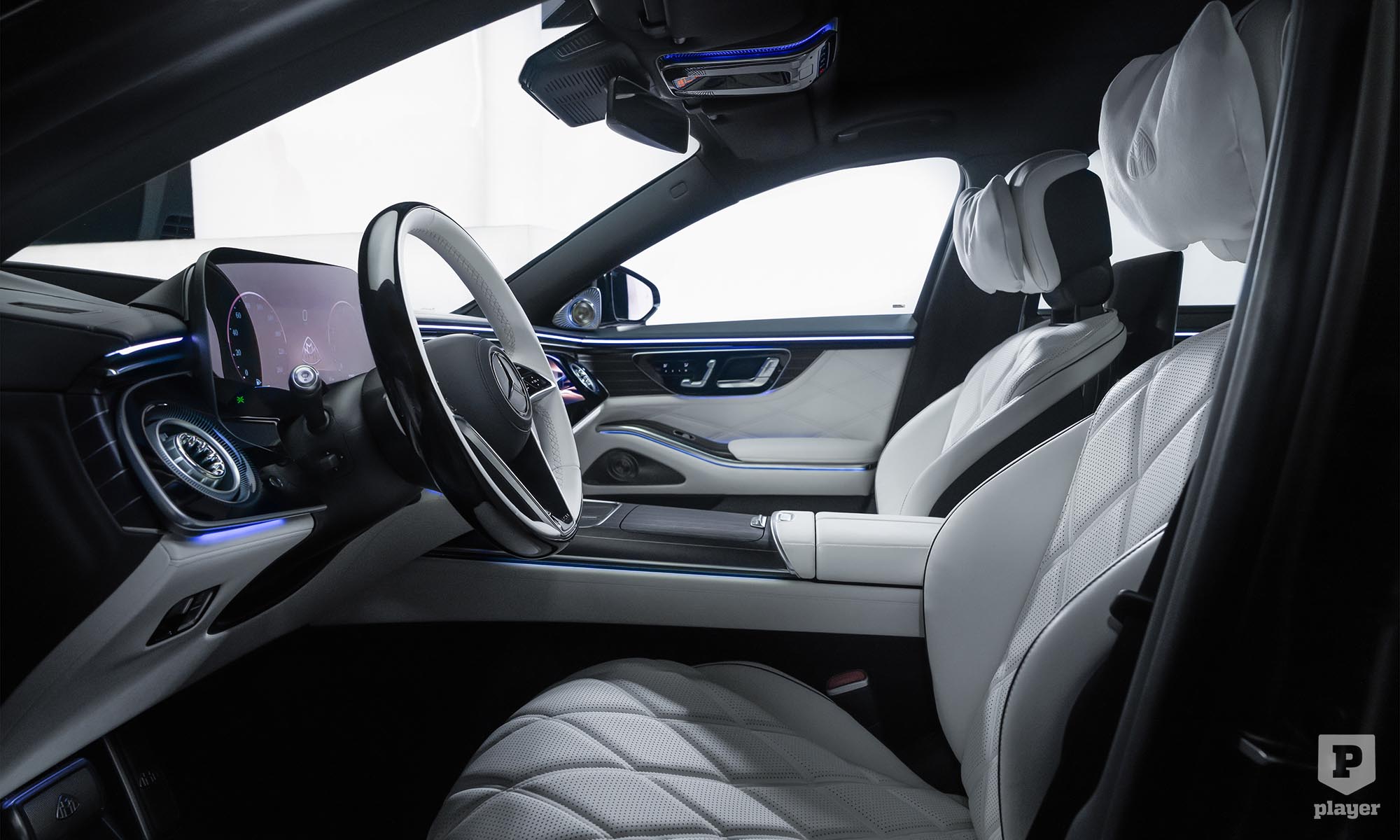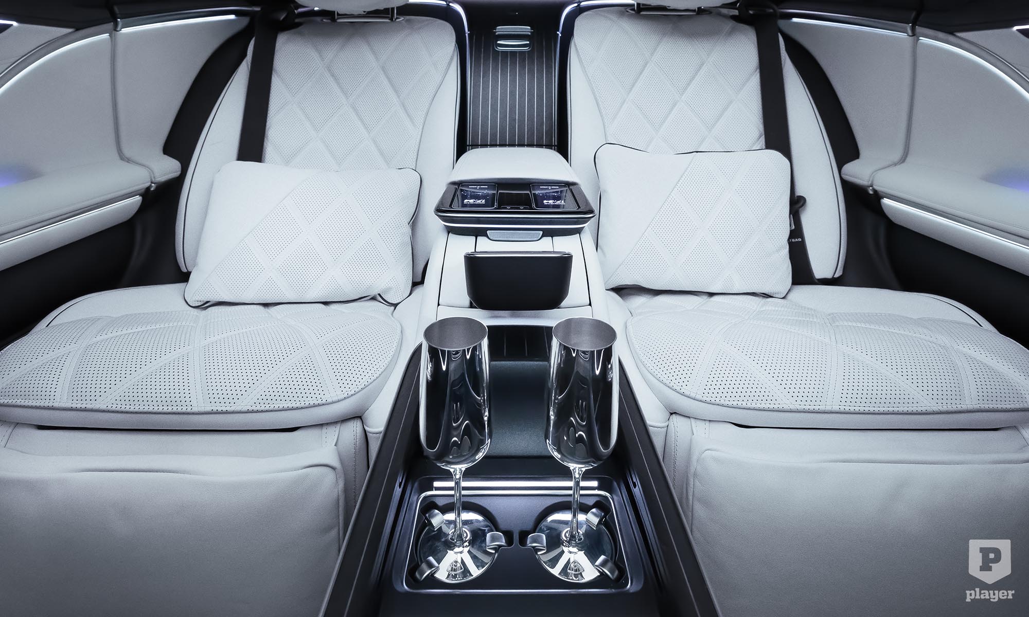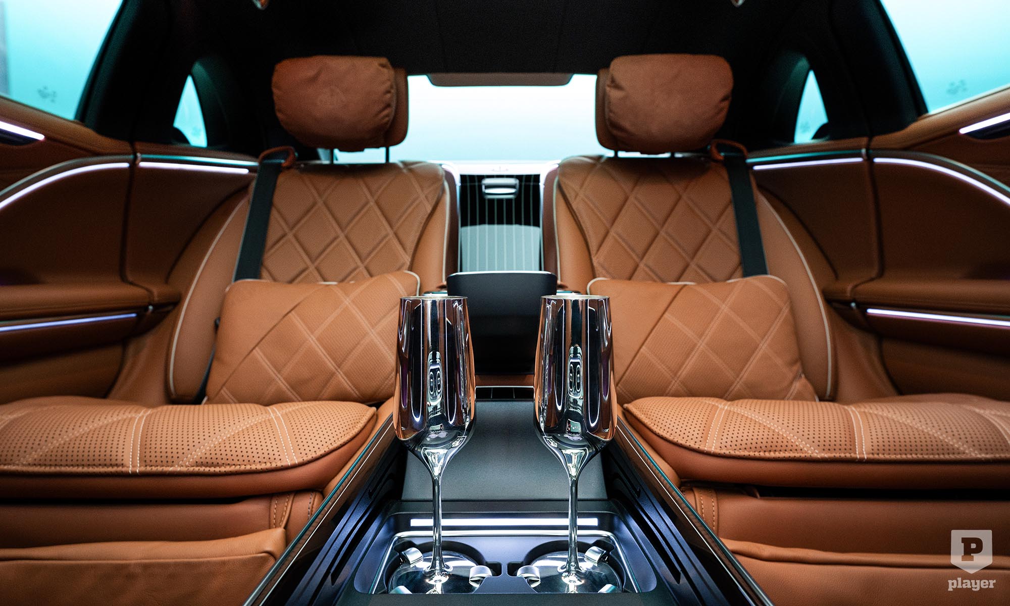 akárcsak a legdrágább luxusautókban. Odabent pompás környezet vár, a magángépekből ismerős fotelekkel, pezsgőspohárral és italhűtővel, és két 13,1 colos képernyővel, hogy ne unatkozzunk út közben. Nemes bőrök és fabetétek közül lehet választani, de a Maybachnál most először bőrmentes belső is kérhető, finom mintájú műbőrrel, valamint lenvászonból és újrahasznosított poliészterből készült textillel.