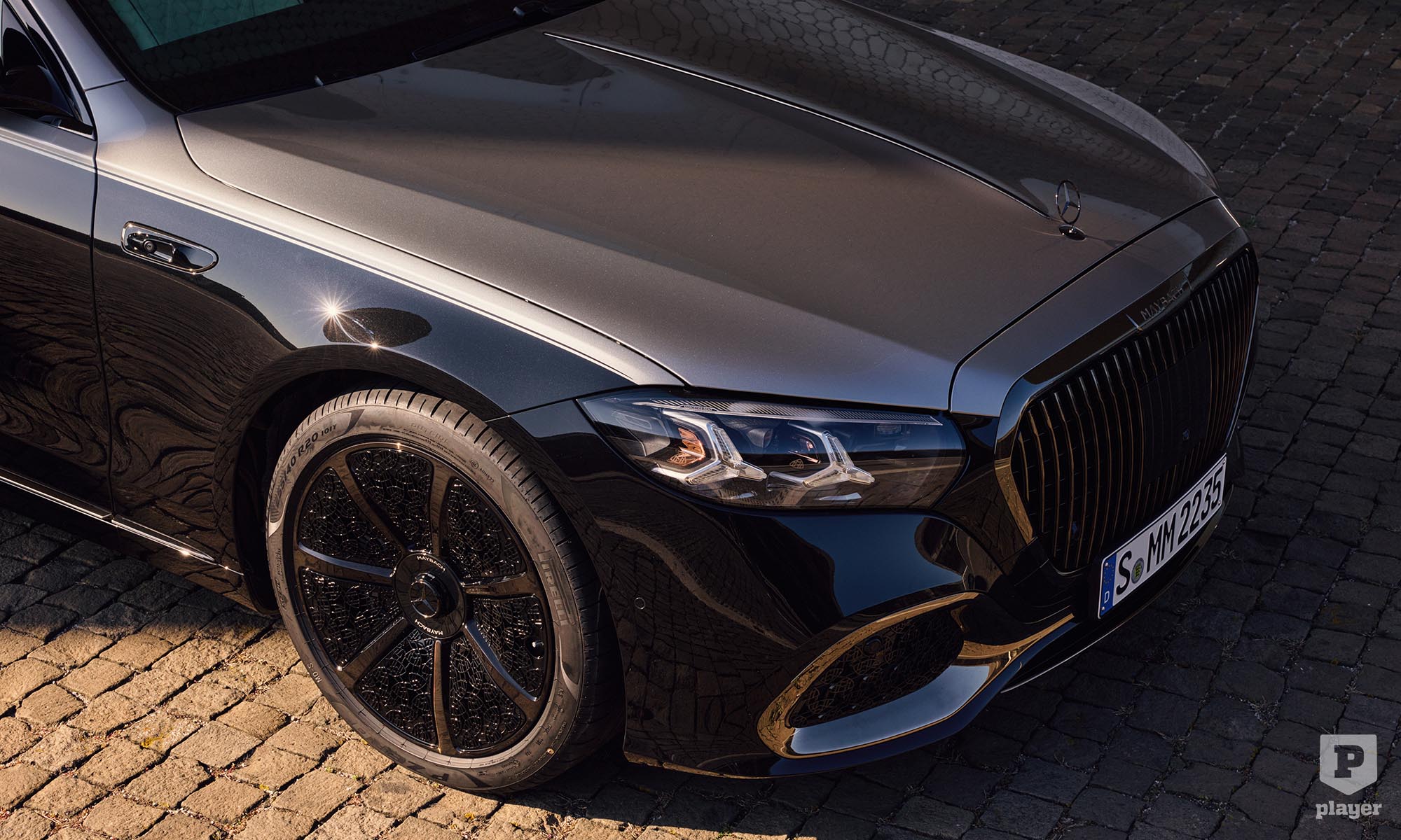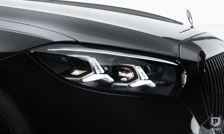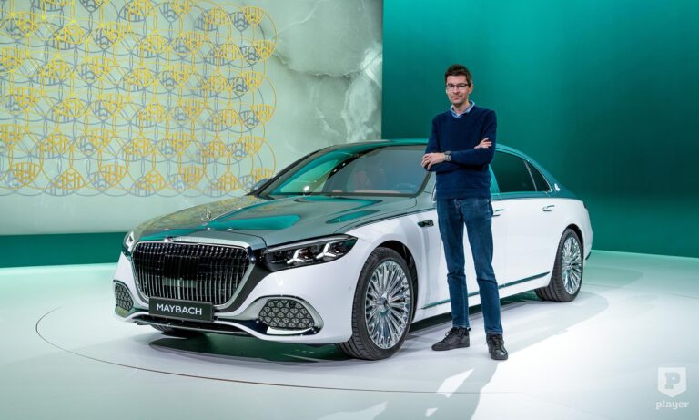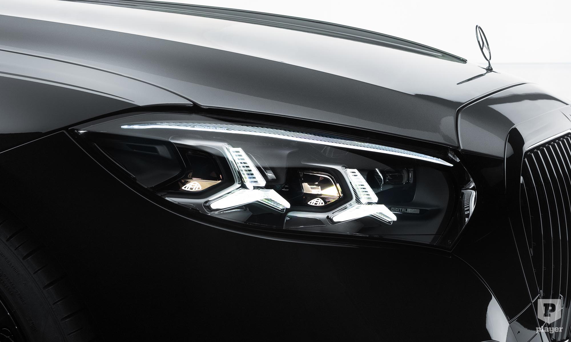 Hatalmas fotóstúdiót rendeztek be a gyár területén, ahová belépve nem volt kérdés, hogy ki a nap főszereplője. A Mercedes-Maybach S-osztály uralja a teret, és nem csak azért, mert 5,5 méter hosszú, még a nyújtott tengelytávú S-osztálynál is hosszabb. Hanem azért is, mert az eddigihez képest 20 százalékkal megnövelt hűtőmaszk sötétben sem hagy kétséget a származása felől. A hűtőrács kerete, a Maybach felirat, és ahol a törvények megengedik, még a motorháztetőre állított csillag és a C-oszlopon lévő embléma is világítanak.