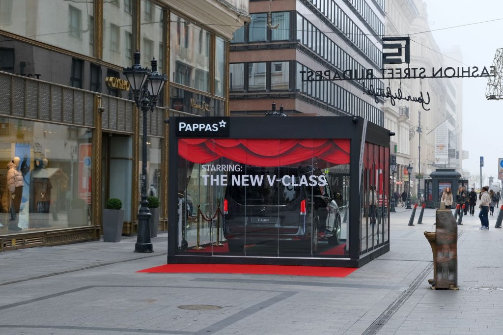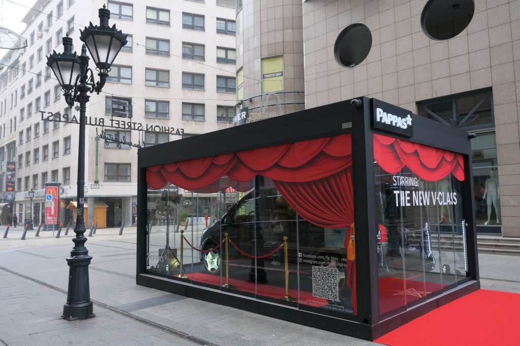 A frissített V-osztályos Mercedes egyik első példányát lehet megnézni november 15-éig a Belvárosban.