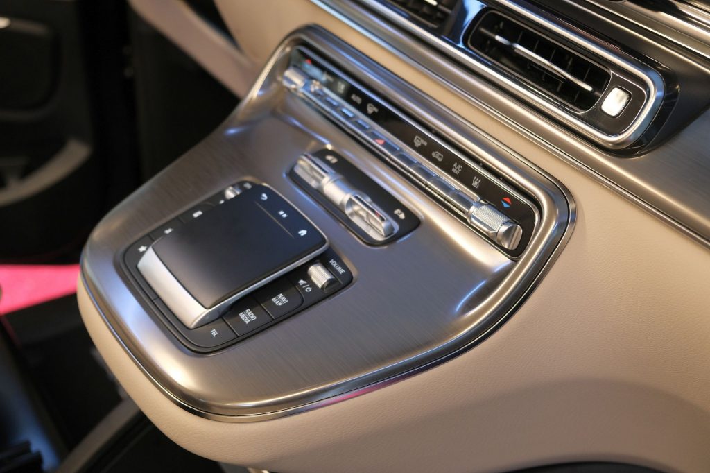 A keddi sajtótájékoztató idejére az importőr az újságírók kedvéért kinyitotta az üvegkalitkát, sőt: a kocsit is, így megcsodálhattuk az új műszerfalat, a tetején a 2x12,3 collos képernyővel. A Mercedes fejlesztői ennél a modellnél példás önuralomról és józanságról tettek tanúbizonyságot (vagy csak maguk is sokat vezetnek autót?), és nem hagyták, hogy az érintőképernyő divatja leuralja a praktikumot. A 2024-es V-osztályban valódi, fizikai gombokból álló klímakonzol segíti az odafigyelést alig igénylő utastéri temperálást, de más funkciókért sem kell folyton nyújtózkodni a távolban levegő óriási touch-screen felé, mert az középkonzol alján a tapipad is megmaradt: