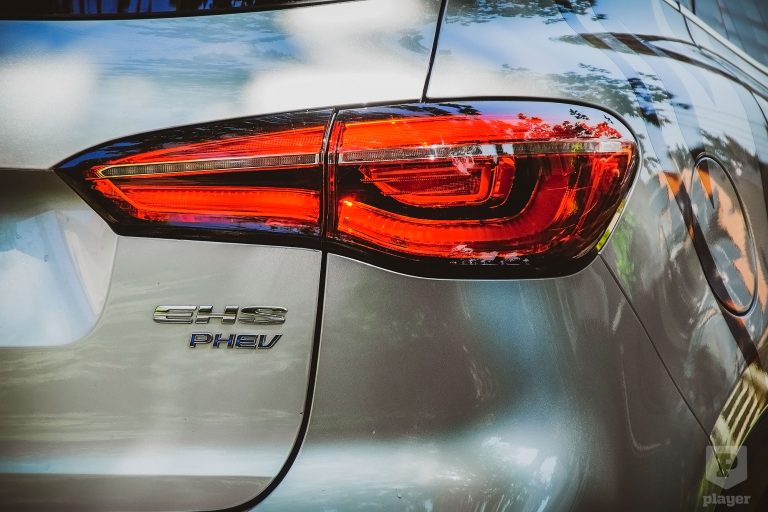 Határozott, jó kiállású, divatos SUV az EHS. A hosszú motorháztető egy kicsit elrontja az arányait, viszont ad is neki egy löket klasszikus eleganciát. Szépek a pozíciófényei, jó a felnije, és ha ugyan kicsit AMG-s vagy mazdás is, de látványos a krómpöttyökből álló hűtőmaszkja. Tetszik, hogy a formatervezők nem greenwashingolták el a benzines technikát, hanem a konnektoros hibrid modell dizájnjának markáns elemévé tették a két ovális kipufogóvéget.