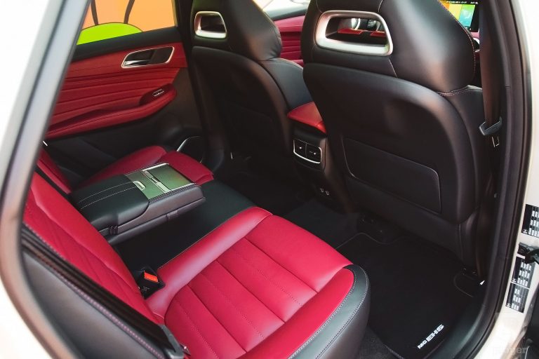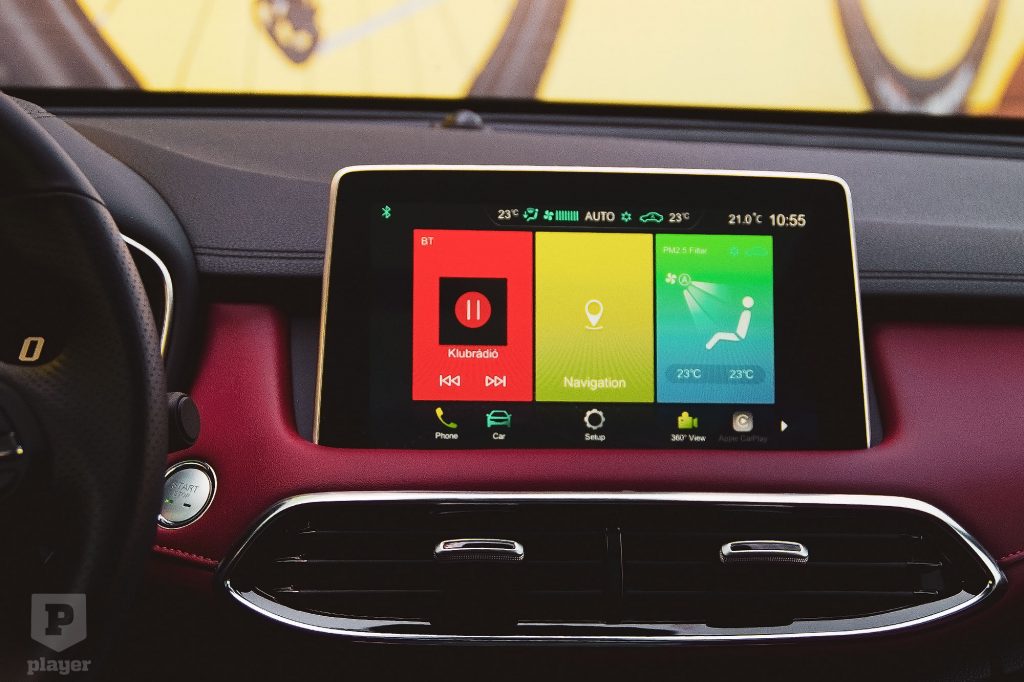 A HMI egyik általam eddig látott MG-nek sem az erőssége, de egy ekkora, ilyen komoly, ennyire elegáns autóban már fájt, hogy a navigáció nem integráns része a rendszernek, A térképet, a navit egy lusta bootolással a motorindítás után külön kell életre kelteni, mintha a gyártó már teljesen beletörődött volna, hogy úgyis mindenki telefontükrözéssel akar majd navigálni. Az akár-kéred-akár-nem-megkapod jellegű erőltetett vezetéstámogatás ebben az autóban is mindenhová betette a lábát. Ha tempomattal autóznánk, a sávtartás még kikapcsolható, de a követőradar már nem.