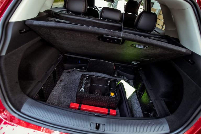 A hátsó traktusban a nagy fej- és lábtér mellett a változtatható szögű üléstámlák segítenek abban, hogy jól érezze magát, aki ide kerül. A csomagtartó a kategória 500+ literes éllovasainál papíron kisebb, de felfelé a magas plafon irányába terjeszkedve jól megpakolható.