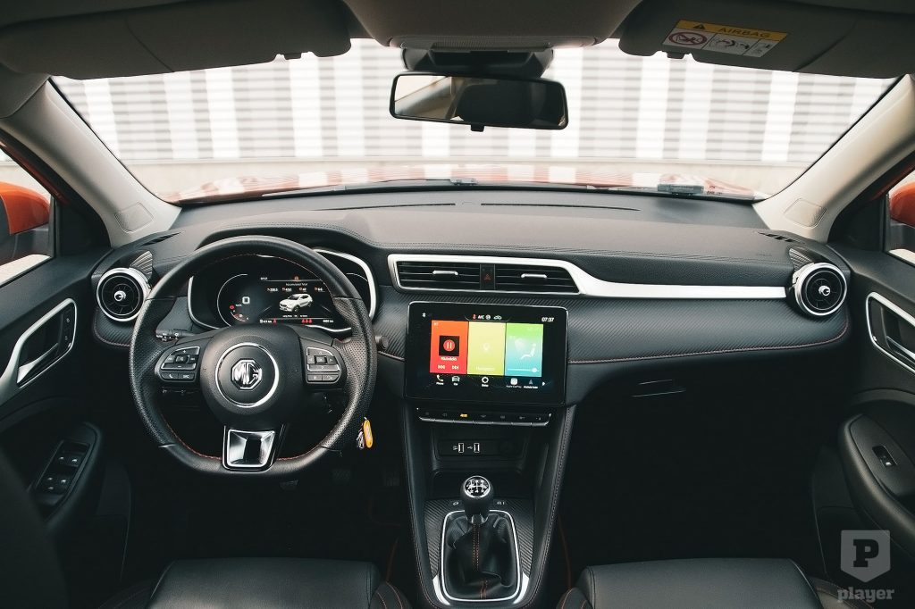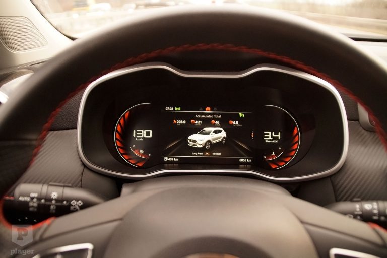 A kerek szellőzőrostélyok látványosan Audi-koppintásból származnak, na de miért baj az, ha egy olcsó kínai kocsiban akármi, bármi is olyan szép, mint egy Audiban? Az enyhén Seatokéra emlékeztető virtuális műszeregység is attraktív, még ha egy kicsit zavaró is, hogy a sebességérték nagyon szélre, bal oldalra került. A középső részen ugyan szépen, jó képminőségben tündököl egy MG ZS, de ebben az agyonkorlátozott mai világban még jobb lenne, ha az lenne mindig a műszeregység fő helyén, szem előtt, hogy épp mennyivel is megyünk.