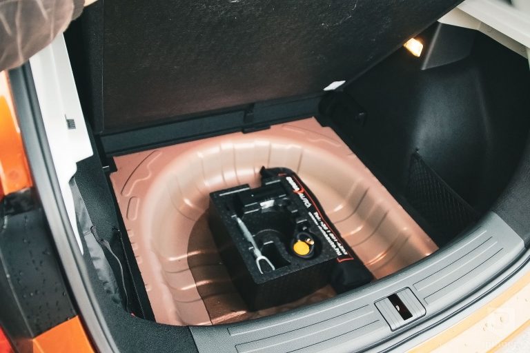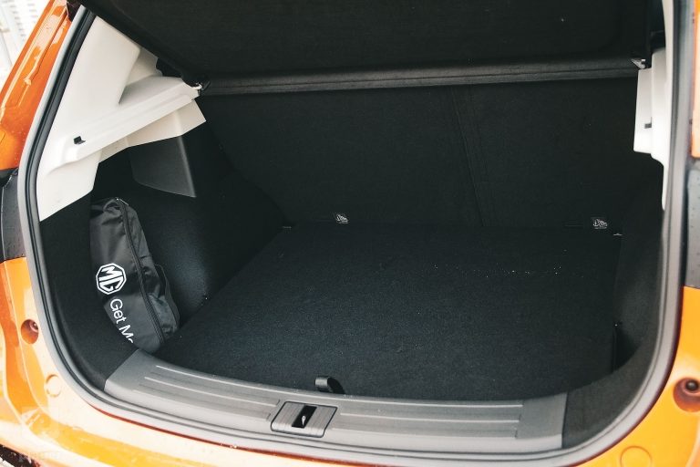 A térkínálat elöl-hátul megfelel a szubkompat crossoverek, SUV-ok átlagának. Az MG ZS egy picit nagyobb, mint egy Vitara (kb. 15 centivel hosszabb, 3-mal szélesebb nála) és picit kisebb, mint egy új Kia Niro. Az első ülés ülőlapja kicsit rövid, hátul nincs középen lehajtható könyöklő, de négy ember kényelmesen elvan a kocsiban hosszabb úton is. A 448 literes csomagtartó nem kisautós, egyértelműen kompaktos méret, a padló alatt pedig még ott a hely egy teljesértékű pótkeréknek is.