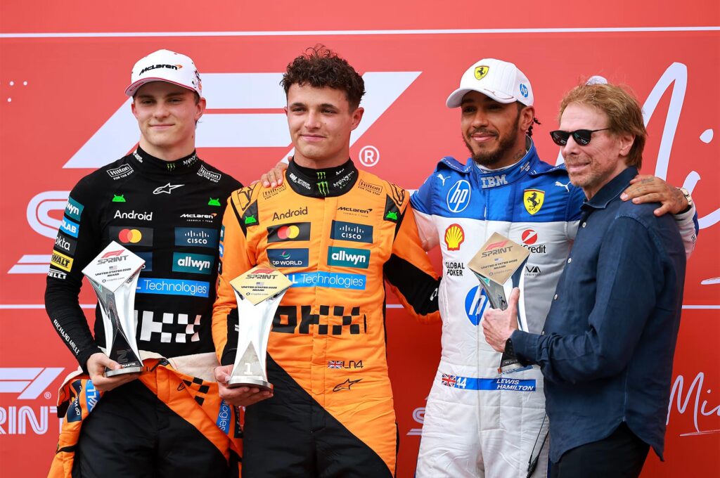 Lando Norris nyerte az idei Miami Nagydíj izgalmakkal teli sprintfutamát, miután a biztonsági autós szakasz alatt tökéletesen időzített bokszkiállással vette át az elsőséget csapattársától. Antonelli nem tudta győzelemre váltani az első pole pozícióját, Hamilton viszont végre felfért a dobogóra.
