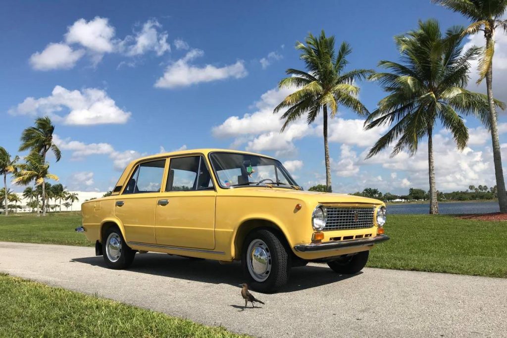 Szép állapotban lévő Zsigulikat nálunk is hirdetnek, de Miamiban már jóval ritkább, hogy egy eladó kereklámpás bukkan fel. A sárga ezerkettes a pálmafák alatt is nagyszerűen néz ki.