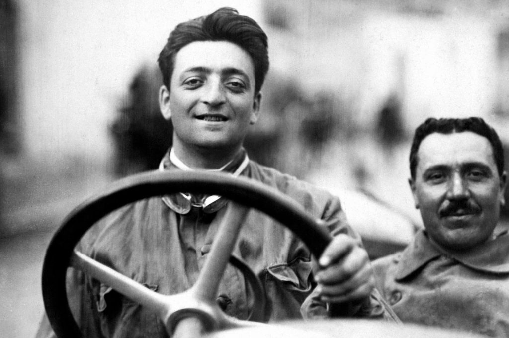 Oké, ezt a képet talán már láttad. Enzo Ferrari a Targa Florión 1920-ban egy Alfa Romeo kormányánál